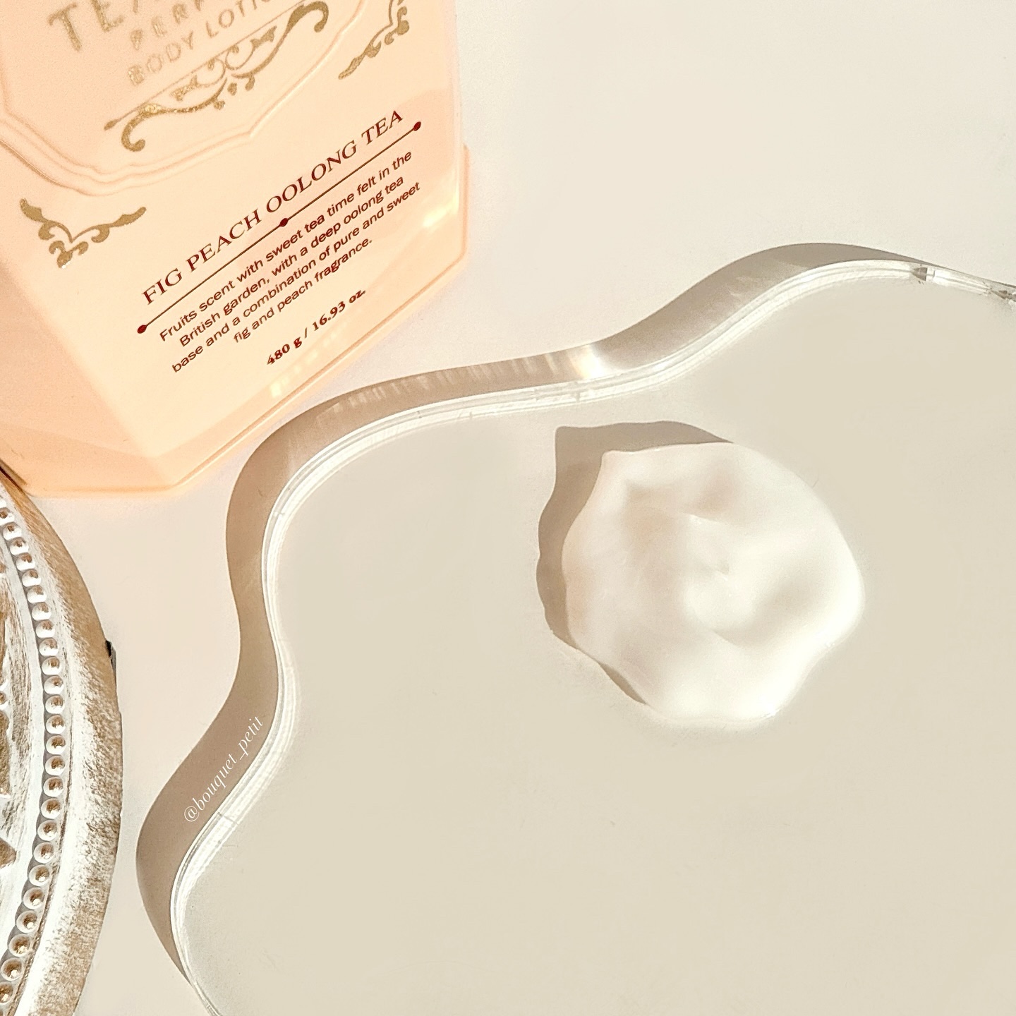 フィグピーチウーロンティー本来の甘い香りとピーチとイチジクの果物の香りが合さってさやわかな香り。 ウーロンティーエキスとイングリッシュハーブ・セラマイドの茶の成分で抗酸化効果を与え、ハリのあるボディアンチエイジング。 美白機能性認証(韓国食品医薬品安全処認証)、透明感のある明るい肌に役立つ。