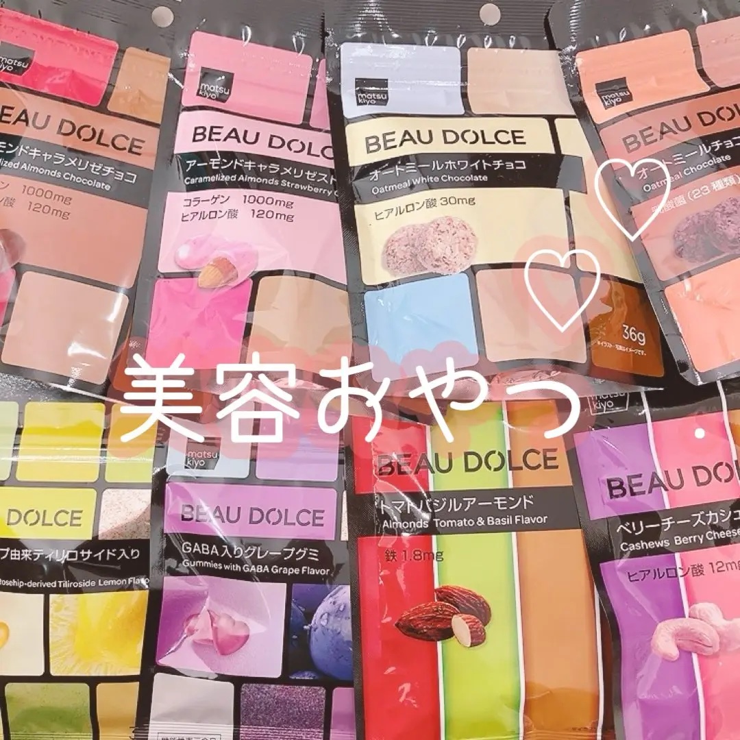 BEAU DOLCE(ボウドルチェ)は、「美」を意味する「Beau」と「お菓子」を意味する「Dolce」を組み合わせた造語で、ヒアルロン酸やGABA、乳酸菌などの美容によいとされる成分を惜しみなく配合した新発想の「美容おやつ」です(∩˃o˂∩)♡ パッケージがもう化粧品のようなデザインでバックの中に入れてるとオシャレなお菓子で気分も上がります🥰 体を気にかけて作られてるお菓子のようなあまり見かけたことの無いお菓子で味も美味しくてどれも最高でした"(∩>ω<∩)"