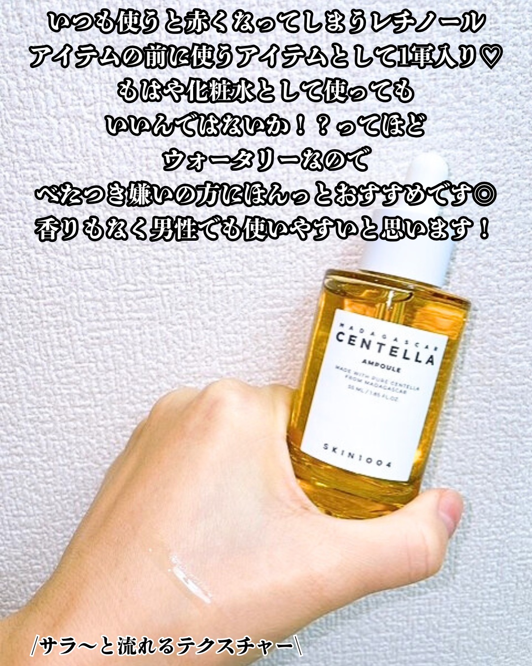 太古の自然マダガスカルの自然由来ツボクサエキスを100%配合し、刺激を受けた肌を鎮静させ、健康的に管理する美容液です。 敏感な肌を素早く鎮静させると同時に、外部の刺激によって荒れた肌をしっとり艶やかによみがえらせます。 べたつかないのに、しっかり保湿 高濃縮スキンケアの前に使用すると、肌の保護膜をつくってくれるお守りのようなアンプルです🤎