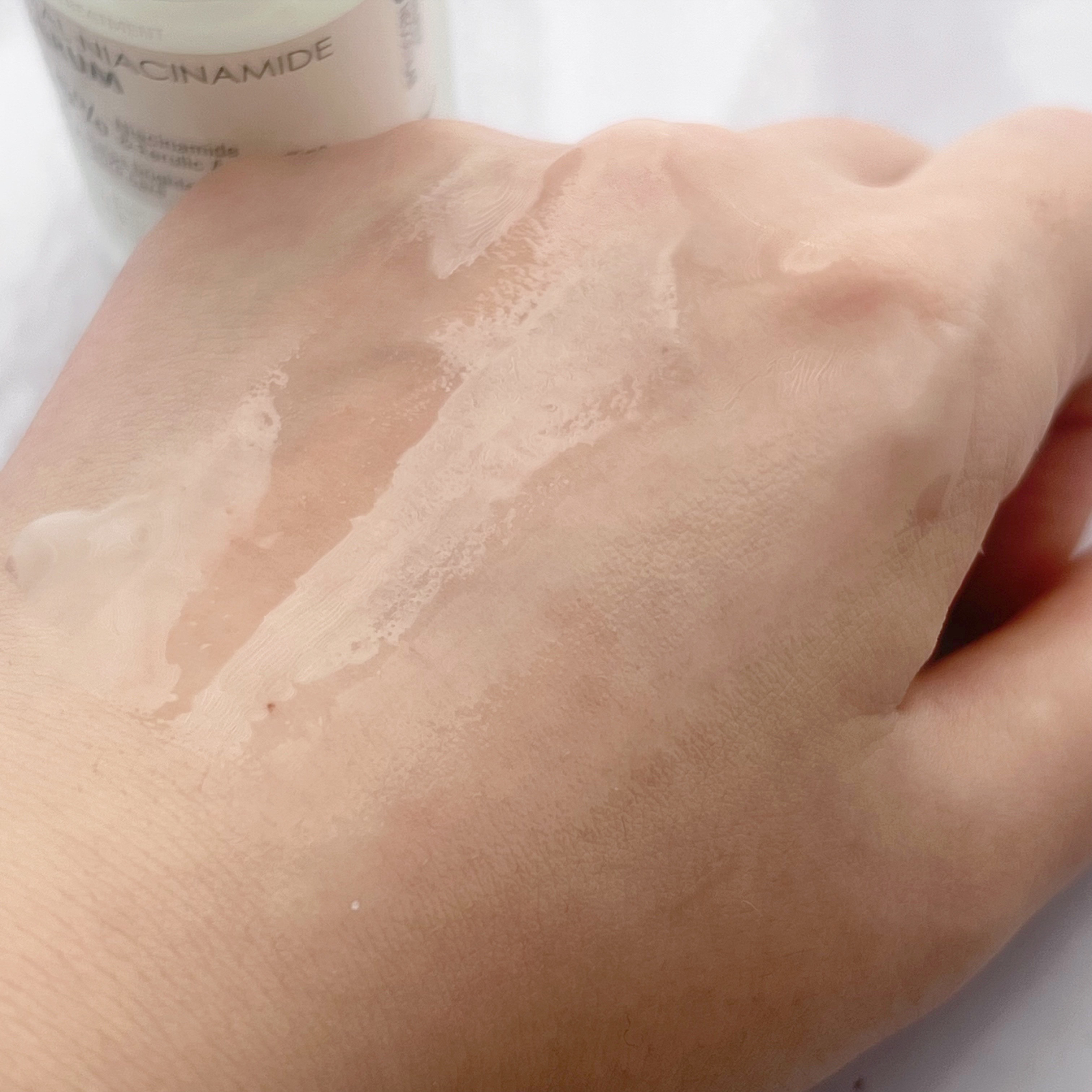 - <30ml> 水、ナイアシンアミド、グリセリン、エチルヘキサン酸セチル、ジプロピレングリコール、1,2-ヘキサンジオール、ポリソルベート60、プロパンジオール、α-ビサボロール、(カプリル酸/カプリン酸)ヤシアルキル、トロメタミン、(アクリレーツ/アクリル酸アルキル(C10-30))クロスポリマー、カルボマー、エチルヘキシルグリセリン、トリ(カプリル酸/カプリン酸)グリセリル、アデノシン、キサンタンガム、水添レシチン、ラウロイルグルタミン酸ジ(フィトステリル/オクチルドデシル)、セラミドNP、リボフラビン、アルブチン、チアミンHCI、パンテノール、OCA亜鉛、フェルラ酸、ヒアルロン酸、オクテニルコハク酸デンプンNa、マルトデキストリン、パントテン酸Ca、ドクダミエキス、アスコルビルリン酸Na、酢酸トコフェロール、ピリドキシンHCI、トウキンセンカエキス、カワラヨモギ花エキス、シリカ
