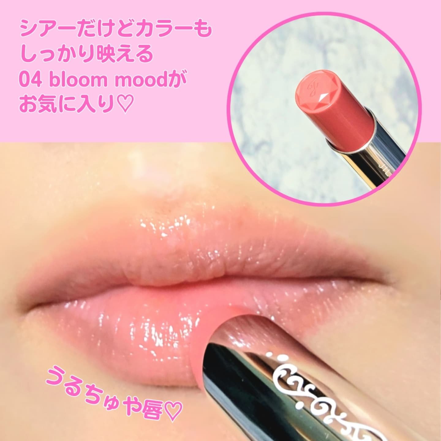 - とろけるようになめらかなタッチで、ふっくらぷるんとした唇を叶えるリップバームが新登場。 清涼感が心地よく、乾燥が気になる唇にうるおいと ツヤをあたえます。 ●デイリーに使えるシアーな発色から、ナチュラルに色づく発色まで、お好みの唇に仕上がります。 ●体温でとろけるブルームモイスチャライジングオイルや、密着感の高いペーストオイルを配合し、しっとりとろけるような塗り心地。 また、 軽いタッチのベタつかないオイルを適量配合することで、さらさらとしたのび広がりを叶えています。 ●清涼感を感じる成分により、 つけた瞬間からスーッとひんやり感じます。 ●密着感の高いオイルとペーストオイルを配合することで、厚い膜でぷっくりとした唇に。 さらに、 塗布膜の均一性を出すオイルがつるんと したツヤ高さを叶え、唇の凹凸をフラットにしながら、縦ジワが目立ちにくい立体感のある唇へとみちびきます。 ●水分を保持するブルームモイスチャライジングオイルにより、うるおい感が持続します。 ●アルコール (エチルアルコール) フリー、パラベンフリー。 ●クリスタルフローラルブーケの香り。