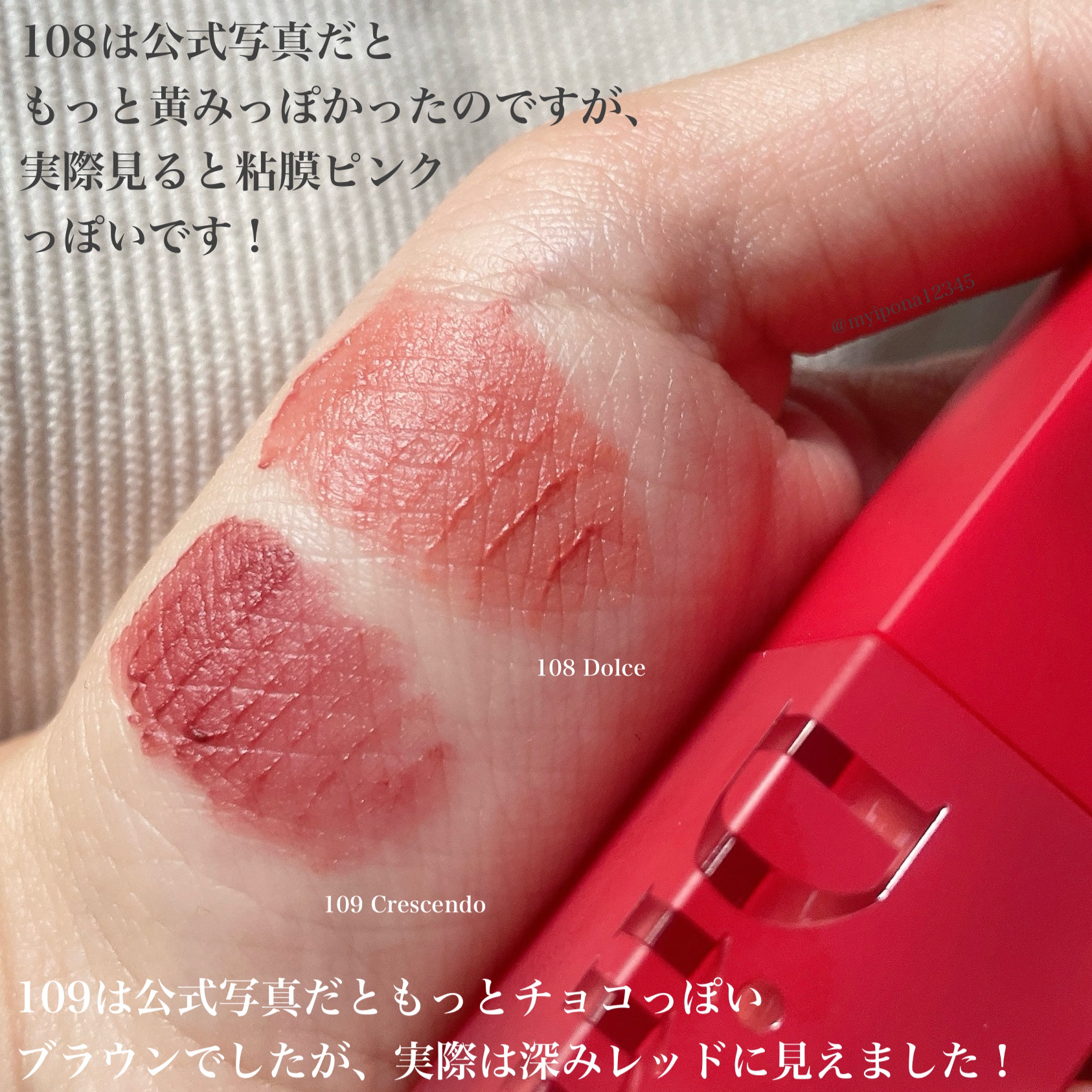 柔らかいスフレテクスチャーが滑らかなブラーリップを完成し、軽くてキレイな仕上がりに✨ スルスル塗れて、細かい部分まで塗りやすいチップとふわふわマットの仕上がりがとってもお気に入り♡ マットタイプのリップにハマっているので他のカラーも買いたいと思います✨