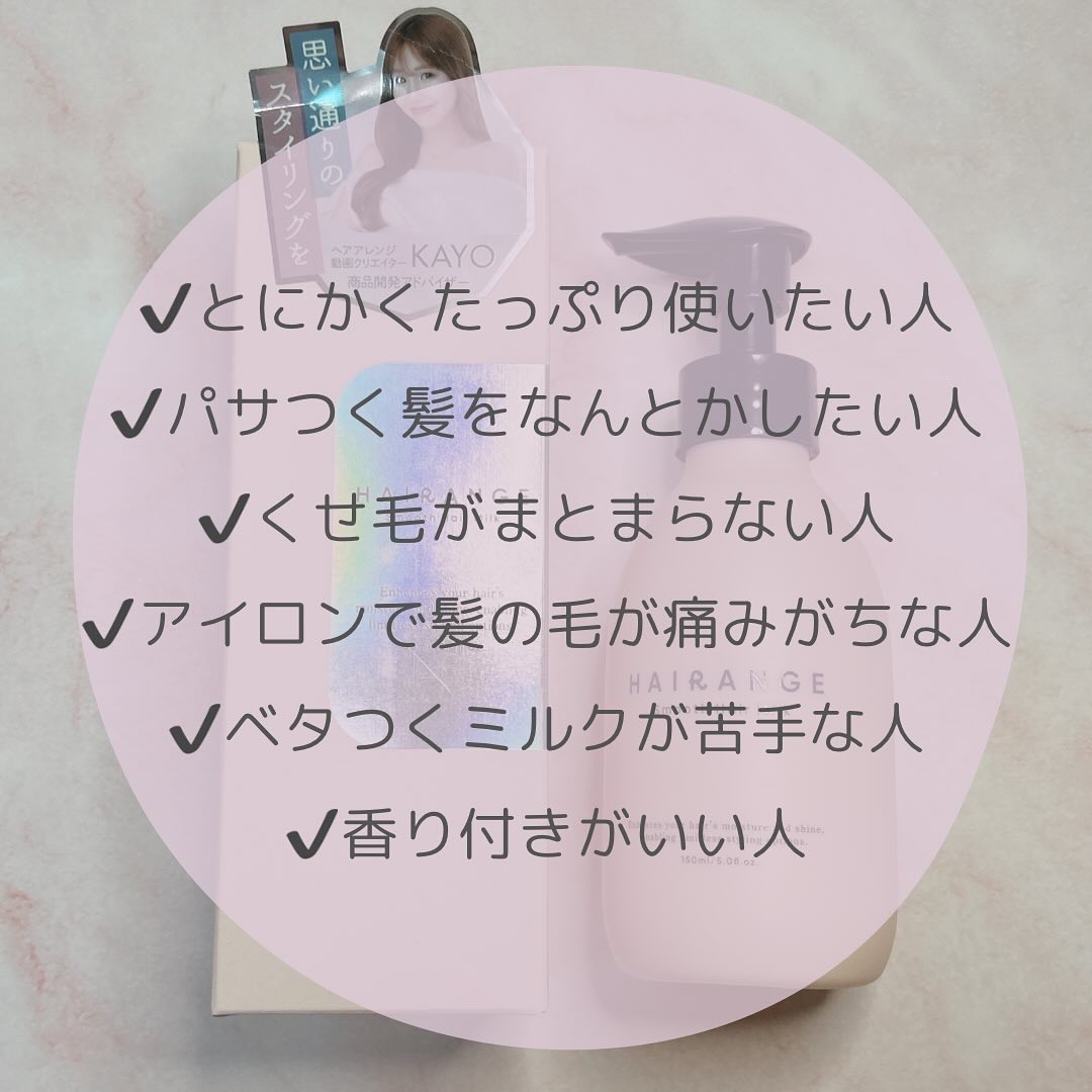 | ヘアケア・スタイリングランキング第6位 | 普通〜太めの髪用のミルク。とにかく香りが甘くて良い匂いで髪のまとまりが出ていい感じです😆 | 詳細を見る | |