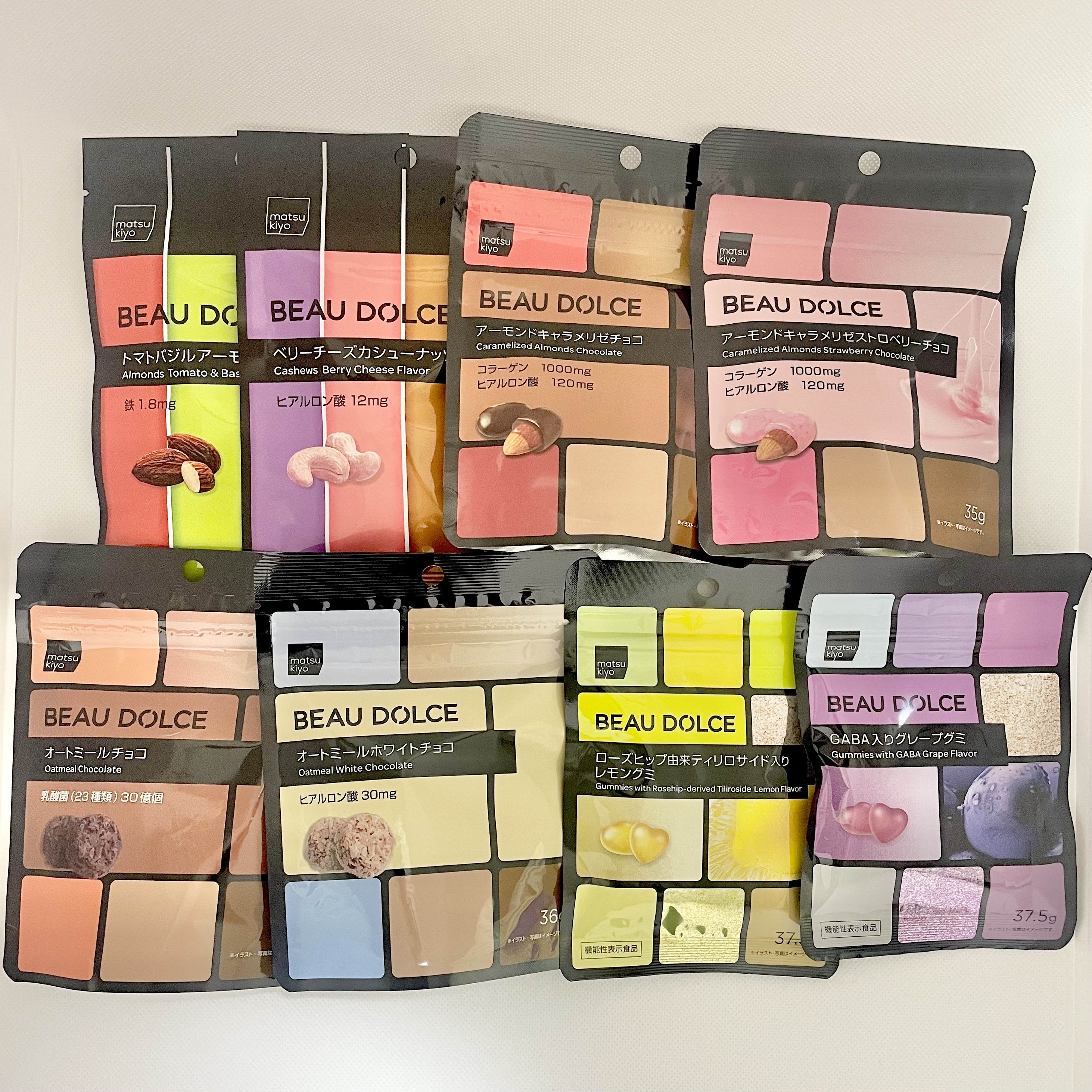 全種類とっても美味しかったです! 私のベスト4はオートミールチョコとアーモンドキャラメリゼチョコ、トマトバジルアーモンド! ヒアルロン酸やGABA、乳酸菌などの美容によいとされる成分を惜しみなく配合した、新発想の「美容おやつ」♪ グミ、ナッツ、オートミールチョコの6種類・新商品の「アーモンドキャラメリゼ」の2種類