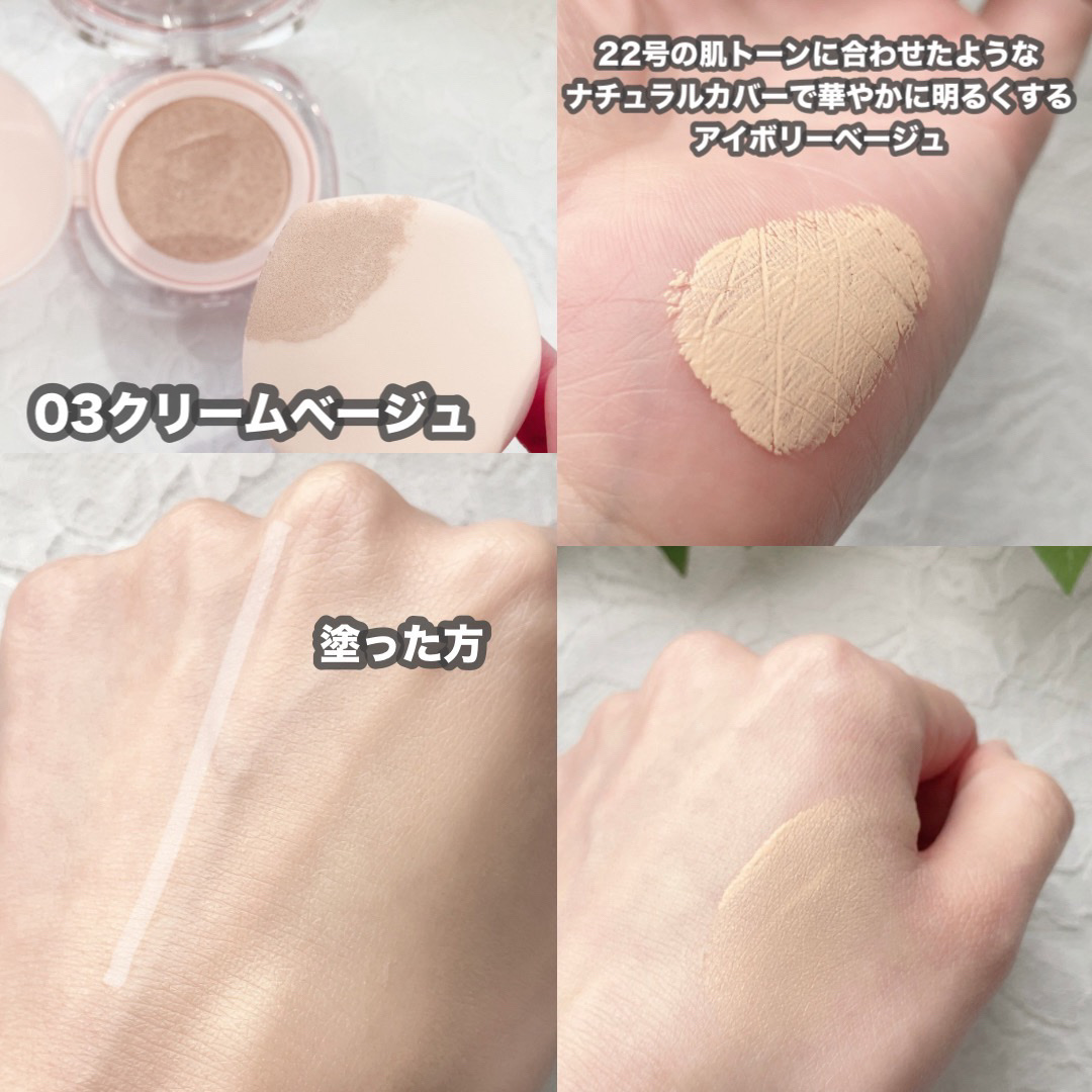 インクのように肌になじみ、シミや不規則な肌トーンを補正インクが染まるように肌のキメの間に入り込み、まだらな肌トーンをコンシーラーレベルのカバー力で、一気に明るくしてリタッチが不要な持続力の強い、クッションファンデーション😀 微細なシリカパウダーと、光を反射するパールパウダーが毛穴とデコボコをカバーしてシリコンゲル成分が毛穴を埋めてツヤ光肌を演出してくれます。 ハイカバー過ぎない所とツヤが合わさってまるで自分の肌のような自然な仕上がりでした🤗