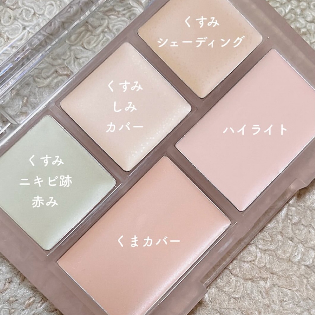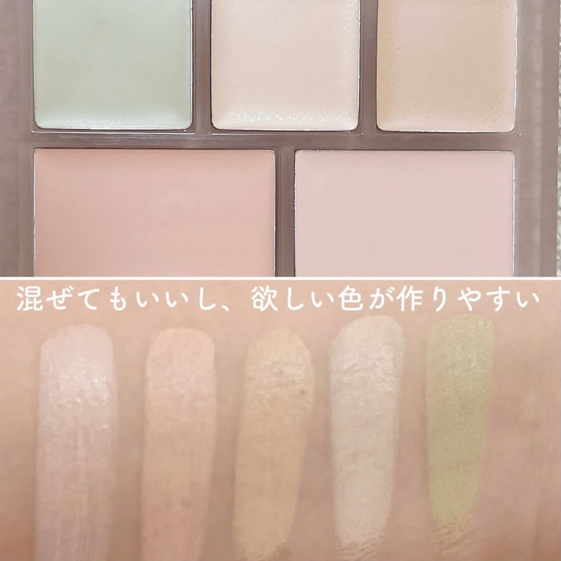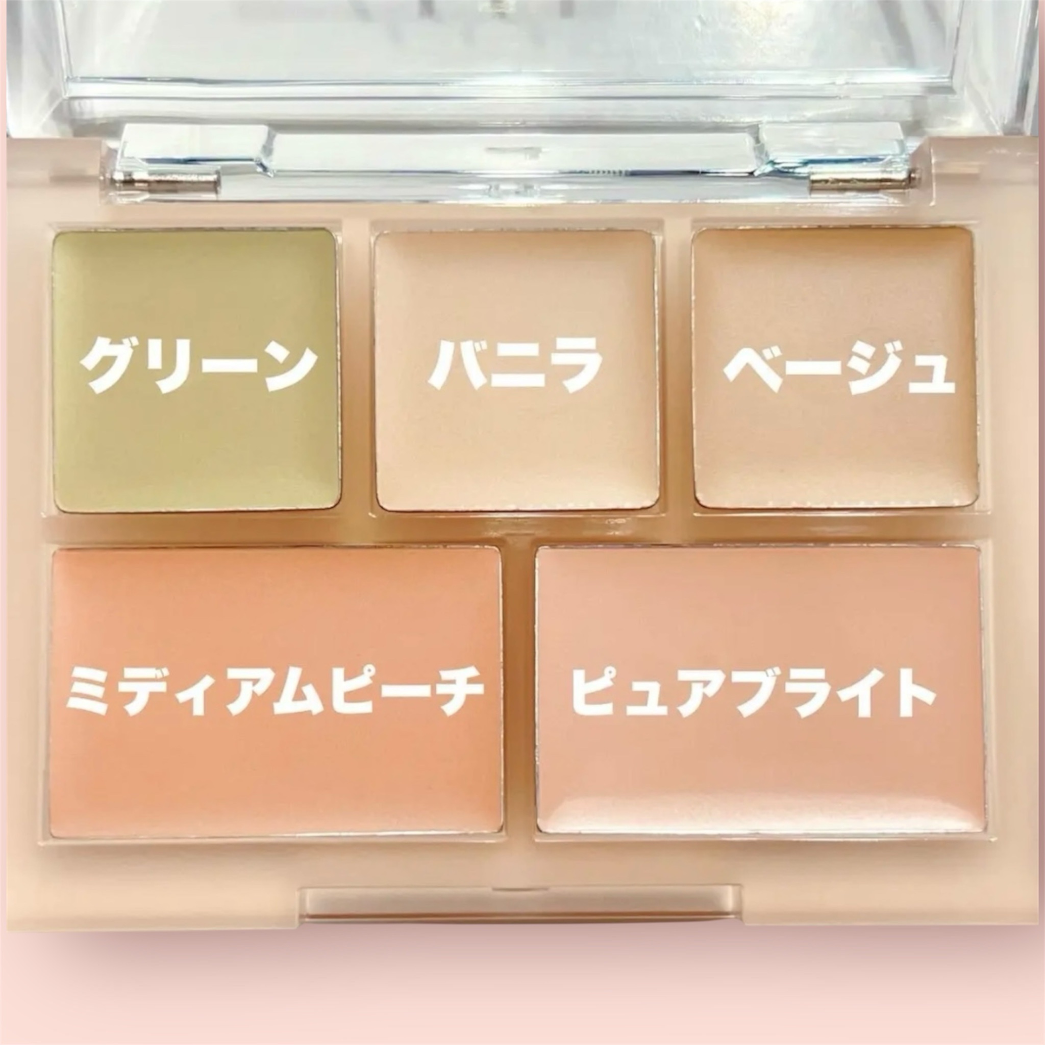 一つのパレットでカバーからカラーコントロールまで出来るカバーコンシーラーパレットです。 色ムラや赤みなど色んな肌悩みにアプローチする5色のカラーでコスパ最強のコンシーラーパレットになっています😍 しっとりとしたテクスチャーで密着感を感じられます!また色を混ぜて自分の肌に馴染む色味を作れるのも嬉しいです✨