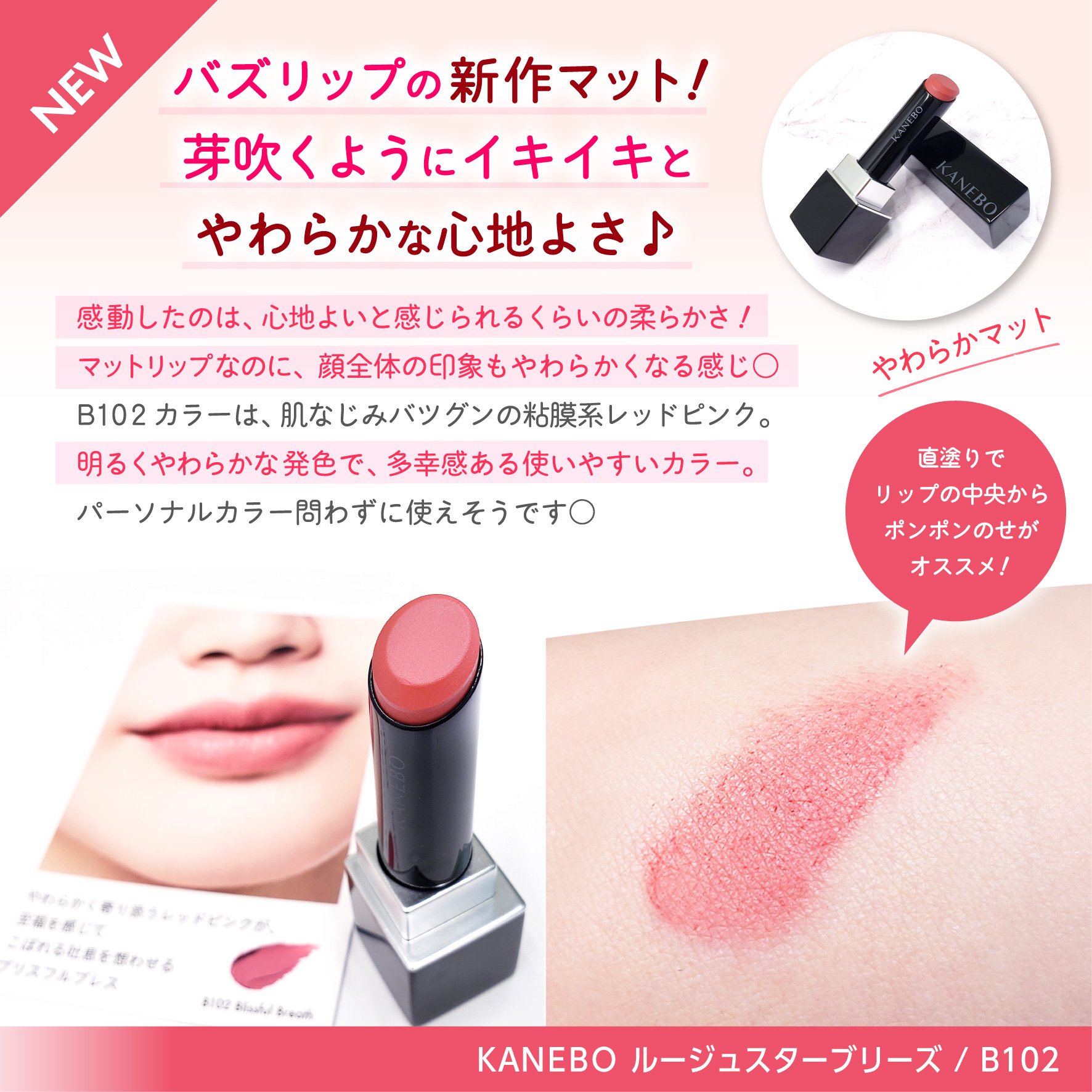 大人気のKANBO美容液ルージュに、ソフトマットな質感が特徴のルージュスターブリーズが登場♡ こんなにもうるおい感と温度感のあるマットリップは初めてで感動してる……🥹 ヴァイブラントもブリーズもじゅわっと血色感がたまらない😍