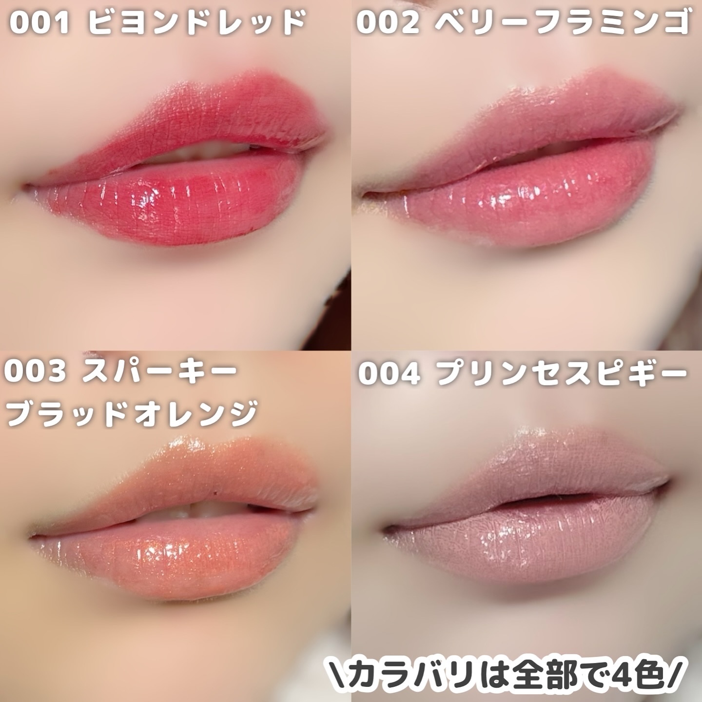 発色がきれいなカラーリップセラム この季節に唇ガサガサになってたから潤い成分たっぷりなのがありがたい💙002と003はラメ入りでより立体感なくちびるメイクになったよ🤍 3日間以上使い続けることで保湿力がありしっとり唇に導いてくれる✨ パケがおしゃれで可愛くてポーチに入れて持ち歩くだけでテンション上がる♪飾っても可愛い♥