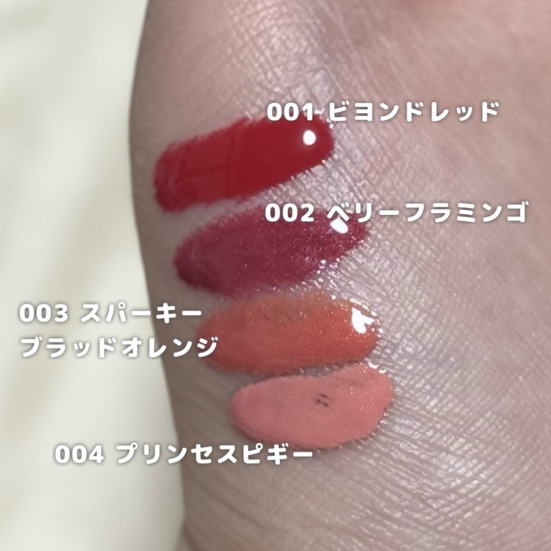 - <001 ビヨンドレッド> 水添ポリイソブテン、スクワラン、テトライソステアリン酸ペンタエリスリチル、パラフィン、マイクロクリスタリンワックス、ジパルミトイルヒドロキシプロリン、オリーブ果実油、ホホバ種子油、オプンチアフィクスインジカ種子油、ポリクオタニウム-61、イソステアリン酸、火山土、アスコルビン酸、アミロペクチン、ヒアルロン酸、1,2-ヘキサンジオール、エチルヘキシルグリセリン、水、トコフェロール、BHT、プロピルパラベン、(+/-)マイカ、トリエチルヘキサノイン、トリイソステアリン酸ポリグリセリル-2、酸化チタン、水酸化Al、硫酸Ba、赤202、赤201、赤104(1)、青204、黄4 <002 ベリーフラミンゴ> 水添ポリイソブテン、スクワラン、テトライソステアリン酸ペンタエリスリチル、パラフィン、マイクロクリスタリンワックス、ジパルミトイルヒドロキシプロリン、オリーブ果実油、ホホバ種子油、オプンチアフィクスインジカ種子油、ポリクオタニウム-61、イソステアリン酸、火山土、アスコルビン酸、アミロペクチン、ヒアルロン酸、1,2-ヘキサンジオール、エチルヘキシルグリセリン、水、トコフェロール、BHT、プロピルパラベン、(+/-)マイカ、トリエチルヘキサノイン、トリイソステアリン酸ポリグリセリル-2、酸化チタン、水酸化Al、硫酸Ba、赤202、赤201、赤104(1)、青204、黄5 <003 スパーキーブラッドオレンジ> 水添ポリイソブテン、スクワラン、テトライソステアリン酸ペンタエリスリチル、パラフィン、マイクロクリスタリンワックス、ジパルミトイルヒドロキシプロリン、オリーブ果実油、ホホバ種子油、オプンチアフィクスインジカ種子油、ポリクオタニウム-61、イソステアリン酸、火山土、アスコルビン酸、アミロペクチン、ヒアルロン酸、1,2-ヘキサンジオール、エチルヘキシルグリセリン、水、トコフェロール、BHT、プロピルパラベン、(+/-)マイカ、トリエチルヘキサノイン、トリイソステアリン酸ポリグリセリル-2、酸化チタン、水酸化Al、硫酸Ba、赤202、赤201、赤104(1)、青204、黄6 <004 プリンセスピギー> 水添ポリイソブテン、スクワラン、テトライソステアリン酸ペンタエリスリチル、パラフィン、マイクロクリスタリンワックス、ジパルミトイルヒドロキシプロリン、オリーブ果実油、ホホバ種子油、オプンチアフィクスインジカ種子油、ポリクオタニウム-61、イソステアリン酸、火山土、アスコルビン酸、アミロペクチン、ヒアルロン酸、1,2-ヘキサンジオール、エチルヘキシルグリセリン、水、トコフェロール、BHT、プロピルパラベン、(+/-)マイカ、トリエチルヘキサノイン、トリイソステアリン酸ポリグリセリル-2、酸化チタン、水酸化Al、硫酸Ba、赤202、赤201、赤104(1)、青204、黄7 <005 ブラッディメアリー ヴァイブ> 水添ポリイソブテン、スクワラン、テトライソステアリン酸ペンタエリスリチル、パラフィン、マイクロクリスタリンワックス、ジパルミトイルヒドロキシプロリン、オリーブ果実油、ホホバ種子油、オプンチアフィクスインジカ種子油、ポリクオタニウム-61、イソステアリン酸、火山土、アスコルビン酸、アミロペクチン、ヒアルロン酸、1,2-ヘキサンジオール、エチルヘキシルグリセリン、水、トコフェロール、BHT、プロピルパラベン、(+/-)マイカ、合成フルオロフロゴパイト、トリエチルヘキサノイン、パルミチン酸デキストリン、トリイソステアリン酸ポリグリセリル-2、酸化チタン、水酸化Al、硫酸Ba、赤202、赤201、青204、赤104(1)、黄4、酸化スズ <006 マンゴー タンゴ> 水添ポリイソブテン、スクワラン、テトライソステアリン酸ペンタエリスリチル、パラフィン、マイクロクリスタリンワックス、ジパルミトイルヒドロキシプロリン、オリーブ果実油、ホホバ種子油、オプンチアフィクスインジカ種子油、ポリクオタニウム-61、イソステアリン酸、火山土、アスコルビン酸、アミロペクチン、ヒアルロン酸、1,2-ヘキサンジオール、エチルヘキシルグリセリン、水、トコフェロール、BHT、プロピルパラベン、(+/-)マイカ、合成フルオロフロゴパイト、トリエチルヘキサノイン、パルミチン酸デキストリン、トリイソステアリン酸ポリグリセリル-2、酸化チタン、水酸化Al、硫酸Ba、赤202、赤201、青204、赤104(1)、黄4、酸化スズ <007 タイム トゥ シャイン…> 水添ポリイソブテン、スクワラン、テトライソステアリン酸ペンタエリスリチル、パラフィン、マイクロクリスタリンワックス、ジパルミトイルヒドロキシプロリン、オリーブ果実油、ホホバ種子油、オプンチアフィクスインジカ種子油、ポリクオタニウム-61、イソステアリン酸、火山土、アスコルビン酸、アミロペクチン、ヒアルロン酸、1,2-ヘキサンジオール、エチルヘキシルグリセリン、水、トコフェロール、BHT、プロピルパラベン、(+/-)マイカ、合成フルオロフロゴパイト、トリエチルヘキサノイン、パルミチン酸デキストリン、トリイソステアリン酸ポリグリセリル-2、酸化チタン、水酸化Al、硫酸Ba、赤202、