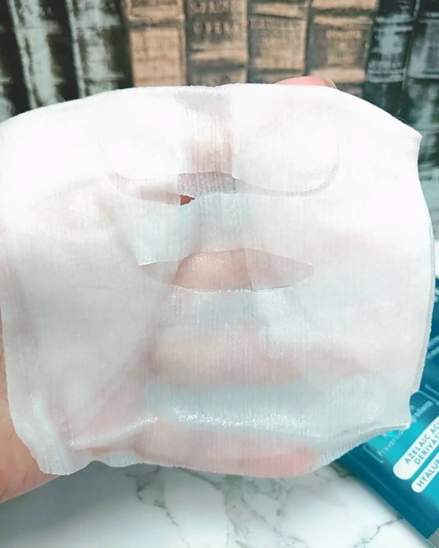 - 肌荒れ・皮脂ケア※1と健やかな肌の土台※2美容を叶える、アゼライン酸誘導体*1配合のうるおいツヤ肌管理マスクです。 肌荒れや肌の赤み、毛穴目立ちが気になる方に。 アゼライン酸*1×ナイアシンアミド*2+次世代ヒアルロン酸*3配合で、肌荒れをケアし、角質層をみずみずしいうるおいで満たします。 さらに肌表面でゆっくりと働くマイルドAHA*4が、古い角質をやわらげ、キメを整えることで、つるんとツヤめく素肌へ導きます。 シートはとろけるように肌に密着するメルティーフィールシートを採用。 シートが最も柔らかく感じられる液量を研究し、まるで水の層に包まれているような心地よさを実現しています。 (※1 ふき取りによる ※2 角質層のこと *1 肌荒れ防止成分 アゼロイルジグリシンK *2 整肌成分 *3 肌荒れ防止成分 加水分解ヒアルロン酸Na *4 整肌成分 マンデル酸)
