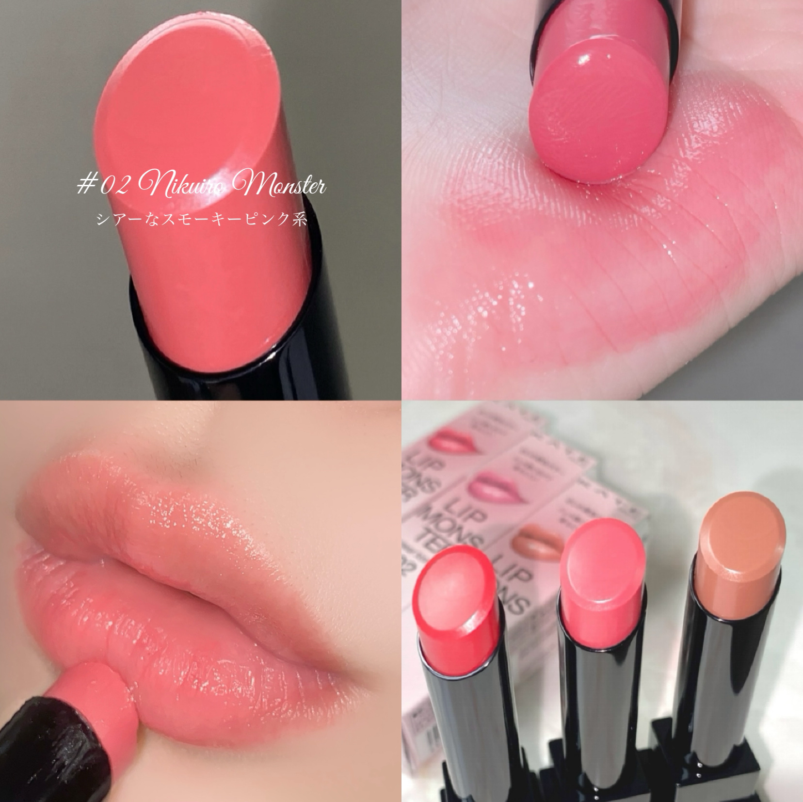 ひとぬりでとろけてツヤがあふれだす リップモンスターツヤバース。唇から蒸発する水分を活用してとろツヤジェル膜に変化する独自技術で、落ちにくい。 トロトロなのに唇に乗せると嫌なベタつきはなくてムラにもならずにスルスル伸び広がってかつしっかりカラー感も楽しめる濃密な発色♡ これは艶リップ好きさん試してみて欲しい! もし一色しか選べないとしたら私の推しはG02 ピンクムーンの雫♡