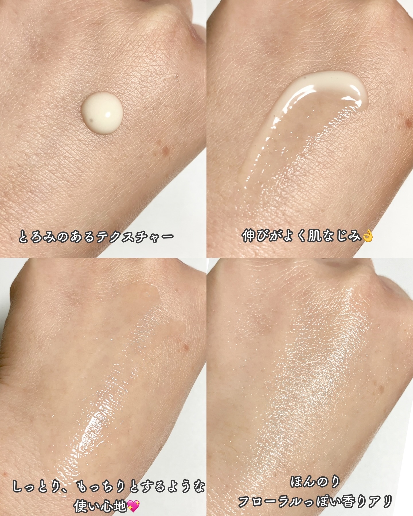 | 伸びの良いテクスチャーで、肌にスッと馴染んでベタつきなく、しっとり◎ | 詳細を見る | |
