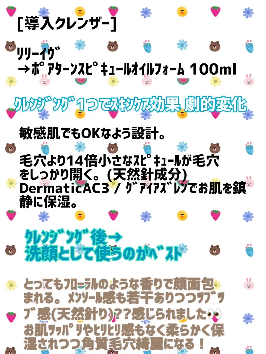 リリーイブ/Lilyeveさまの公式Xプレキャンに当選して、ポアターンスピキュールオイルフォームをいただきました!スピキュール入りのクレンジングオイル🪡この時期は乾燥から敏感になりがちなので少し刺激を感じましたが、肌荒れはしませんでした。私の...