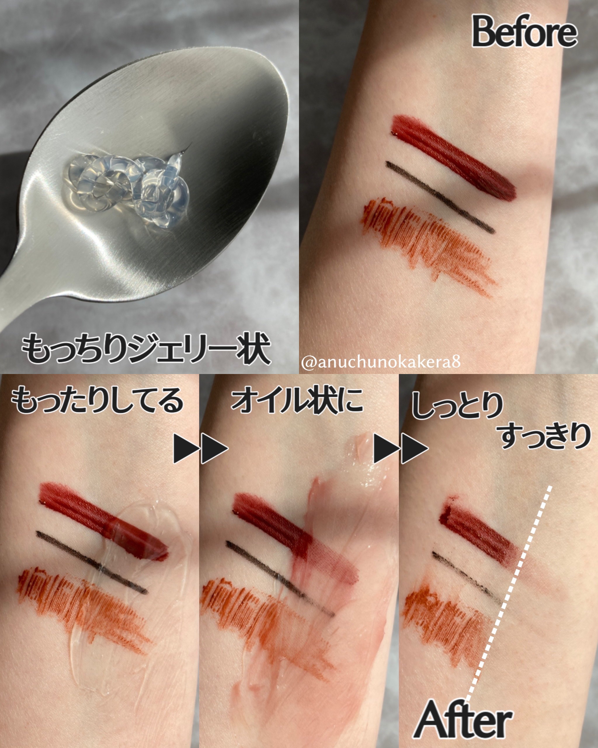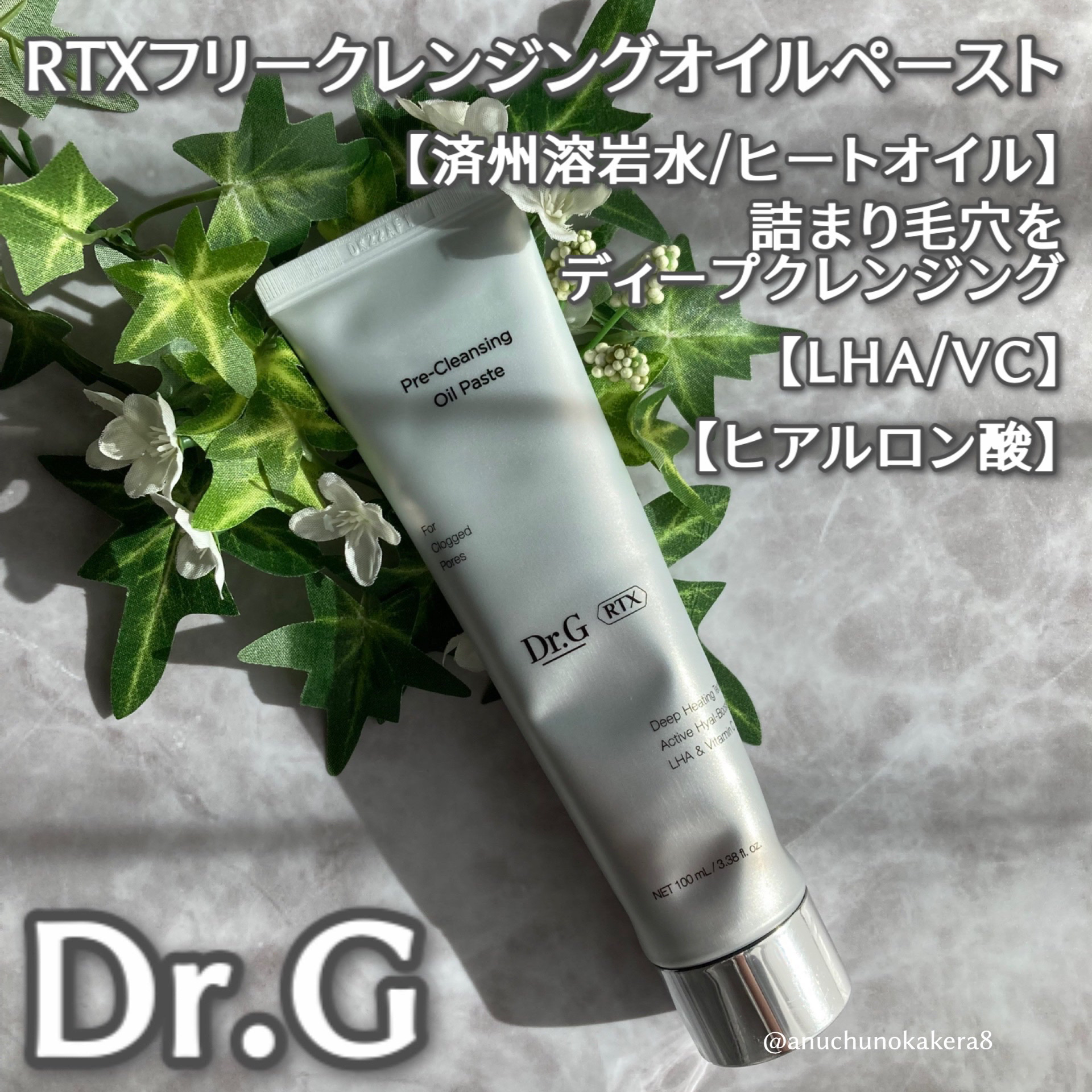 もっちりとしたジェル状で乳化させるとオイルに。 少し固さがあるから通常よりやや多めに使わないと伸ばしにくさはあるものの、厚めに塗って1~2分おいてから流すとしっとり感アップ! 毛穴のつまりにも届いてくれそうな使用感。 ウォータープルーフなどの落ちにくいものは別で落としておいた方が良いです。 Dr.GのRTXフリークレンジングオイルペーストは新商品です。
