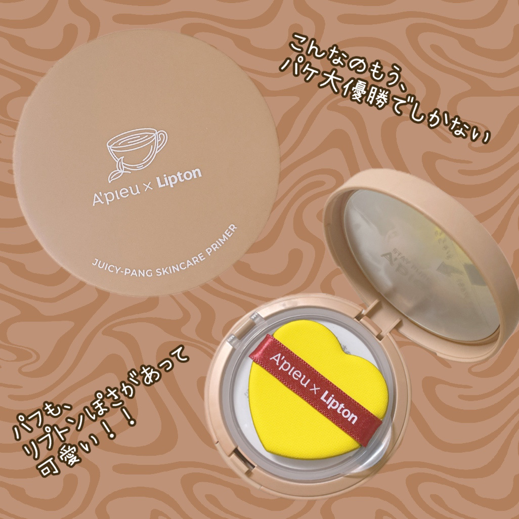 リプトンが生バーム下地に?!アピュージューシーパンスキンケアプライマーMTSPF30PA+++合成着色料フリーアピューとリプトンコラボの化粧下地で、甘いミルクティーの香りがするよ☕メイクアップ効果による毛穴レス&トーンアップを叶えてくれて、リ...