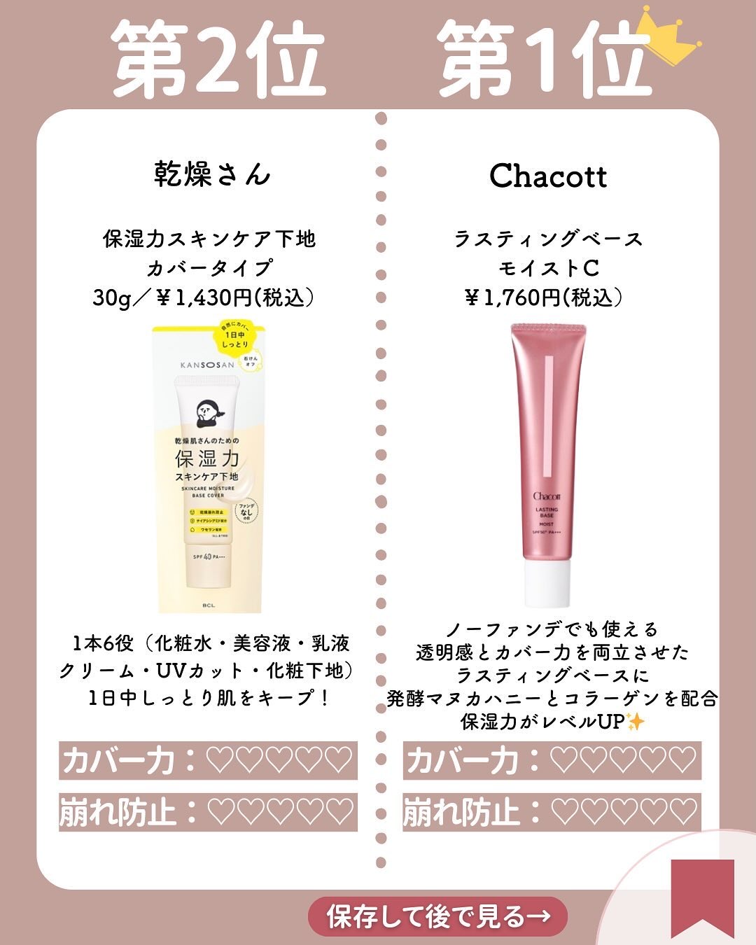 乾燥を感じさせない水分量たっぷりな肌に優しい 高保湿下地を厳選しました🫶🏻💧 保湿力はダントツ!!!カバー力もあるから肌が疲れてる時はこれとパウダーだけで出かけてる 保湿力も密着度もカバー力もあるオールラウンダー!迷ってる人いたらとりあえずこれ買っとけば間違いないやつ。