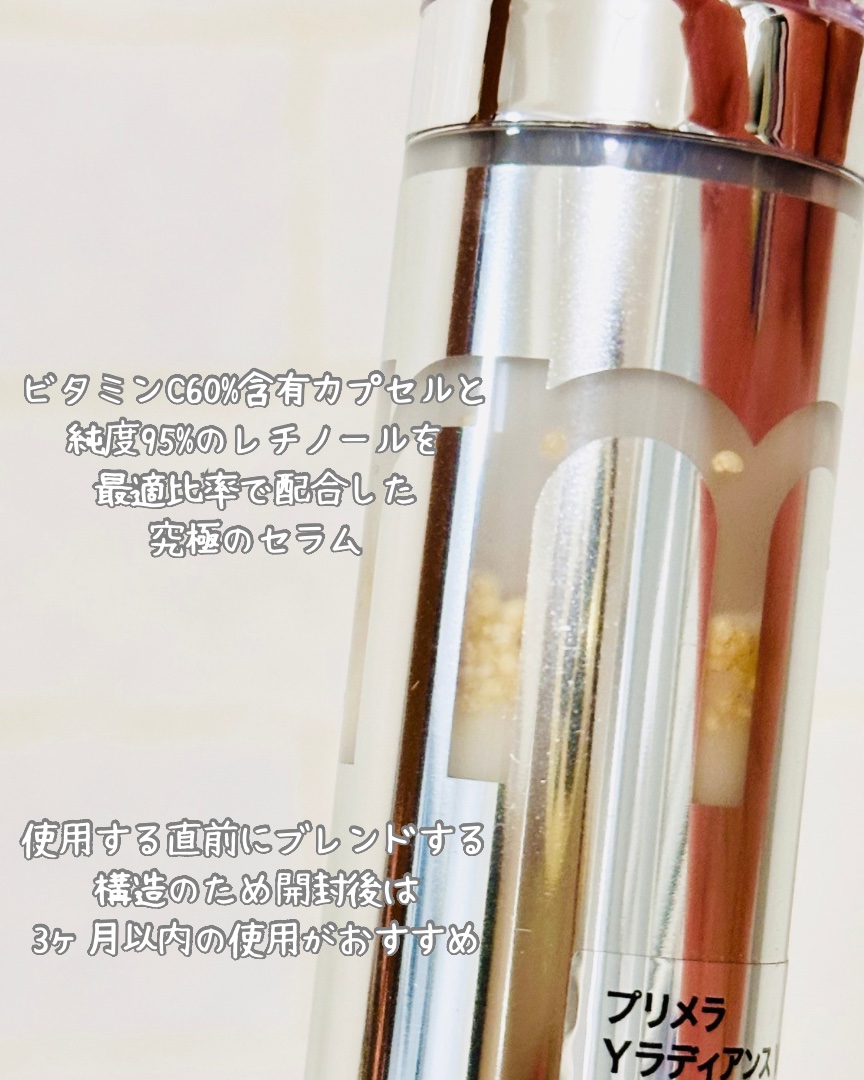 \使う直前に混ぜて完成させるセラム!/primeraユースラディアンスビタチノールセラムこちらはメーカー様から頂きお試し致しました。ありがとうございます。使用する直前に、レチノールとビタミンCを混ぜるセラム!ポンプをカチッとなるまでギュッと押...