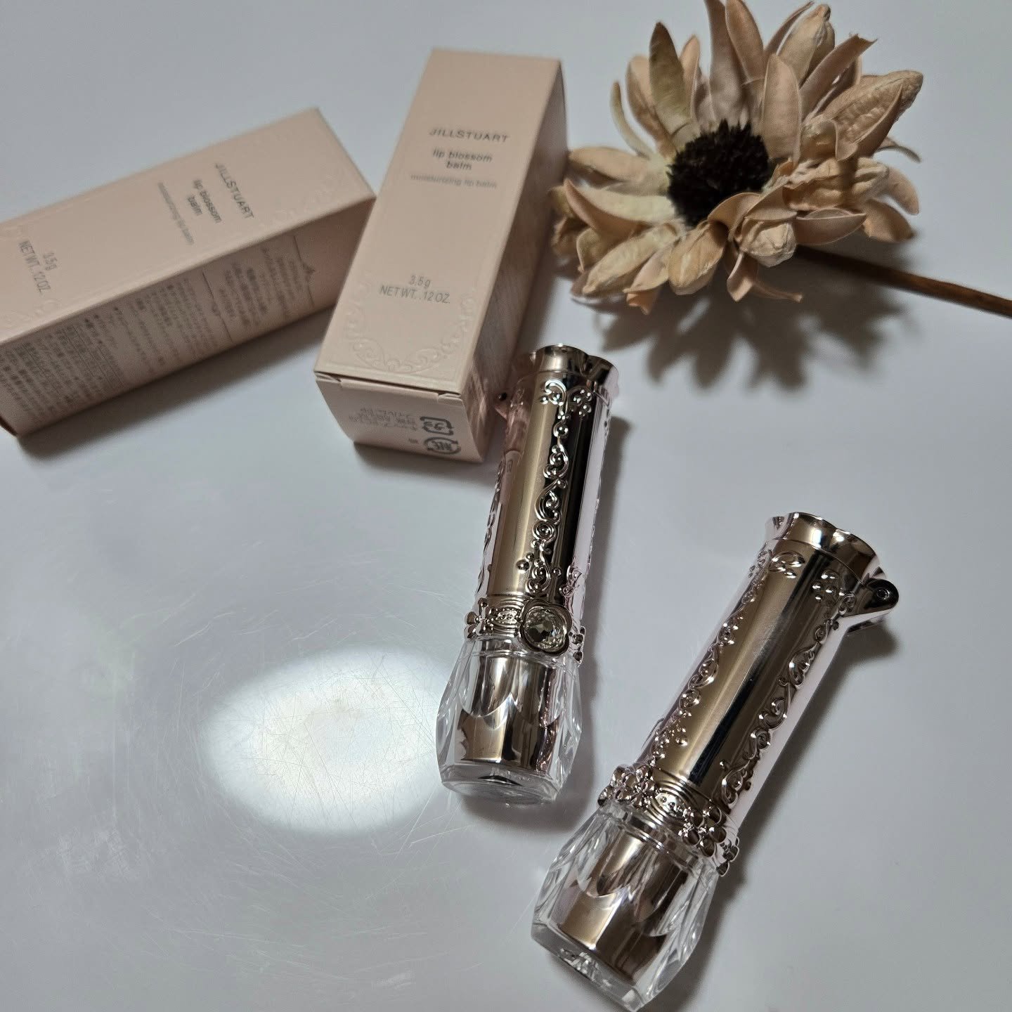 うるおいとツヤで包み込み、唇ぷるん💄 とろけるようになめらかなタッチで、ふっくらぷるんとした唇を叶えるリップバームが新登場💄✨ 体温でとろけるブルームモイスチャライジングオイルや、密着感の高いペーストオイルを配合し、しっとりとろけるような塗り心地💋 花冠をテーマにしたJILL STUARTらしい世界観のパッケージは、ため息が出るほど可愛く使う度に気分が上がります✨