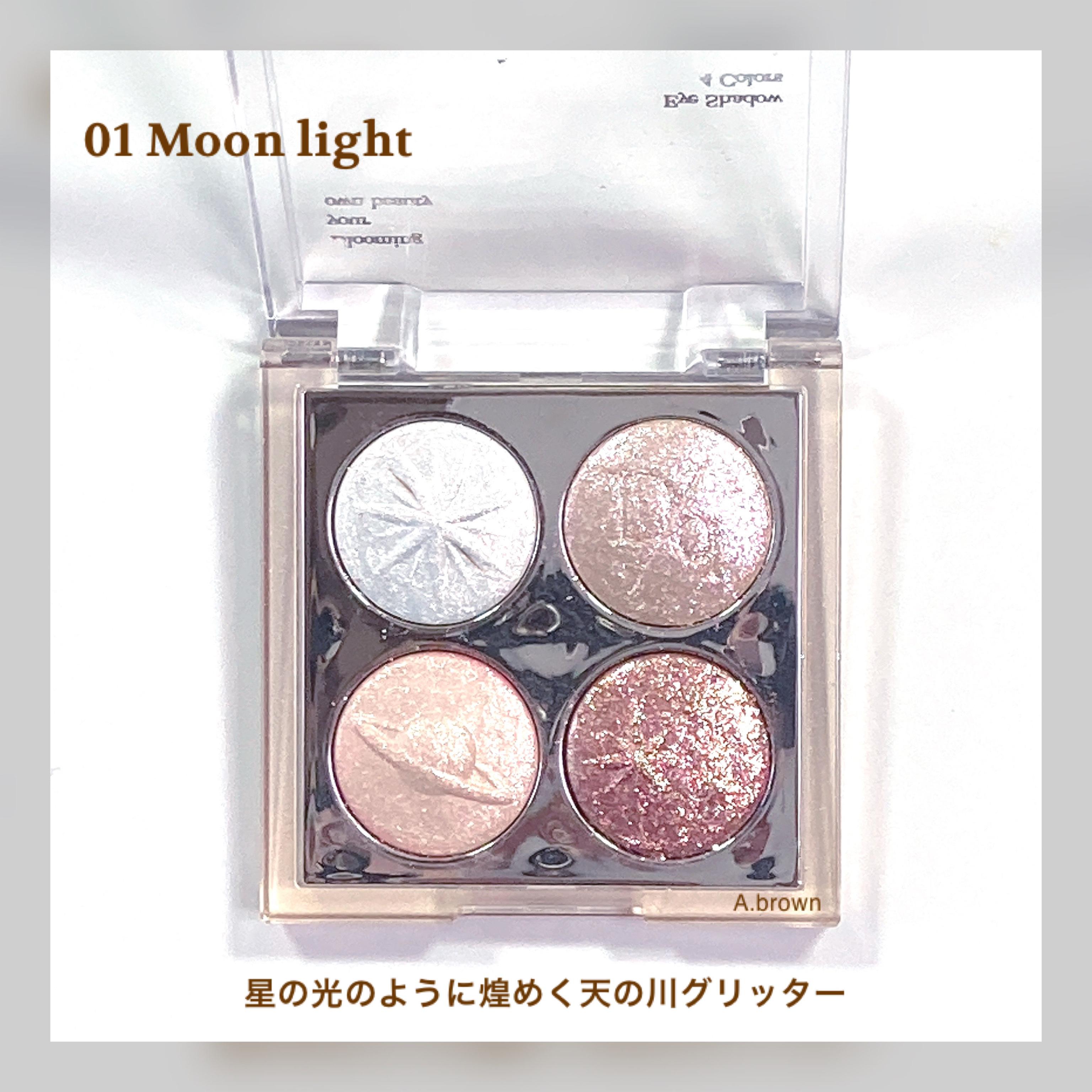 - 夜空に果てしなく広がるきらびやかな星の光を込めた ホリデープリズムシャドウパレット 01 ムーンライト 暖かく輝く月明かりグリッターをたっぷり詰め華やかなホリデームードを演出するプリズムシャドウパレット 02 オーロラ 神秘的に輝くオーロラの光グリッターをたっぷり詰め込み、夢幻的なホリデームードを演出するプリズムシャドウパレット