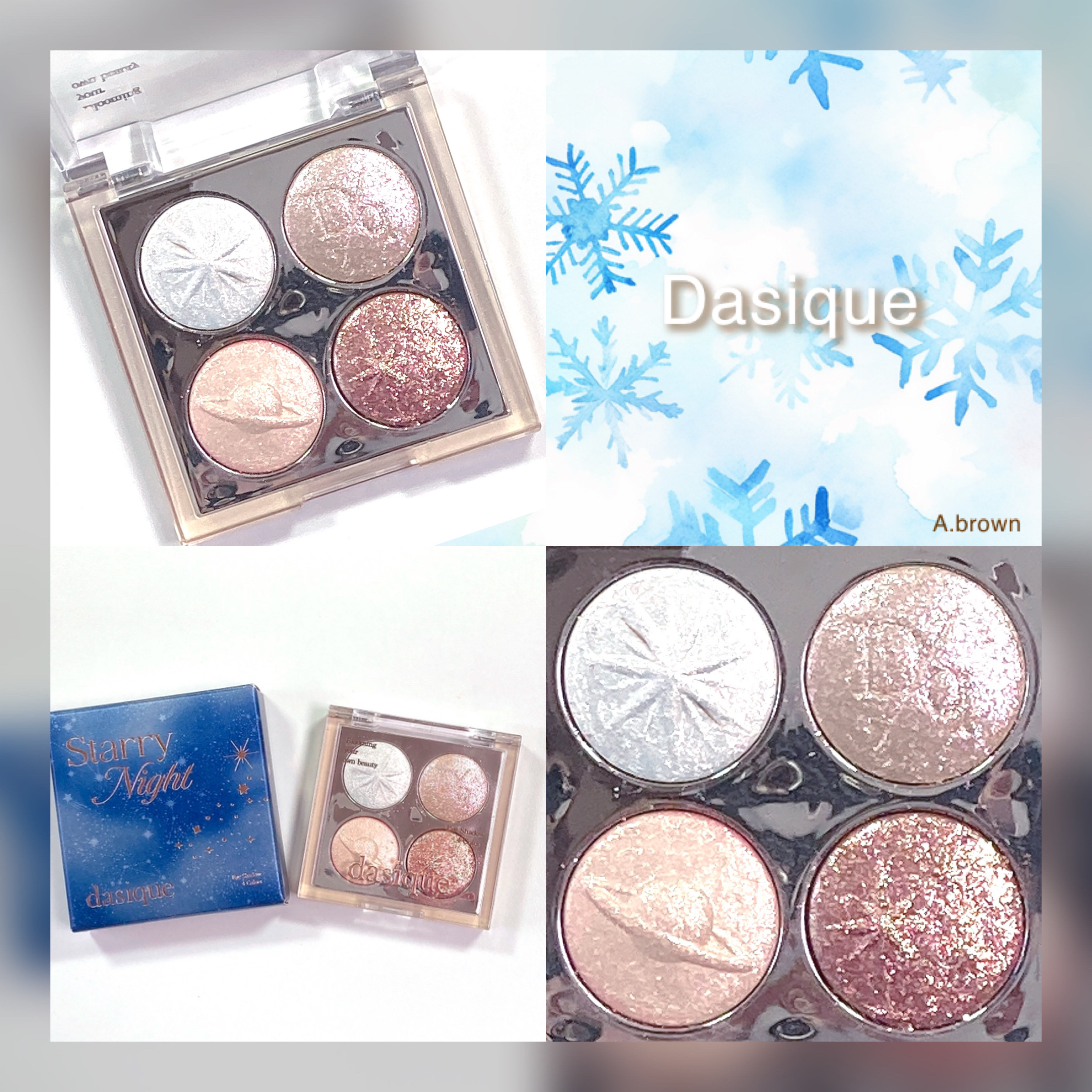 今日はdasiqueのホリデーコレクションを紹介します💖Dasiquestarrynightshadowpalette01moonlight4色グリッターで組み合わされたパレットでどの色もキラキラで可愛すぎる🤩アイシャドウにもハイライトにも使...