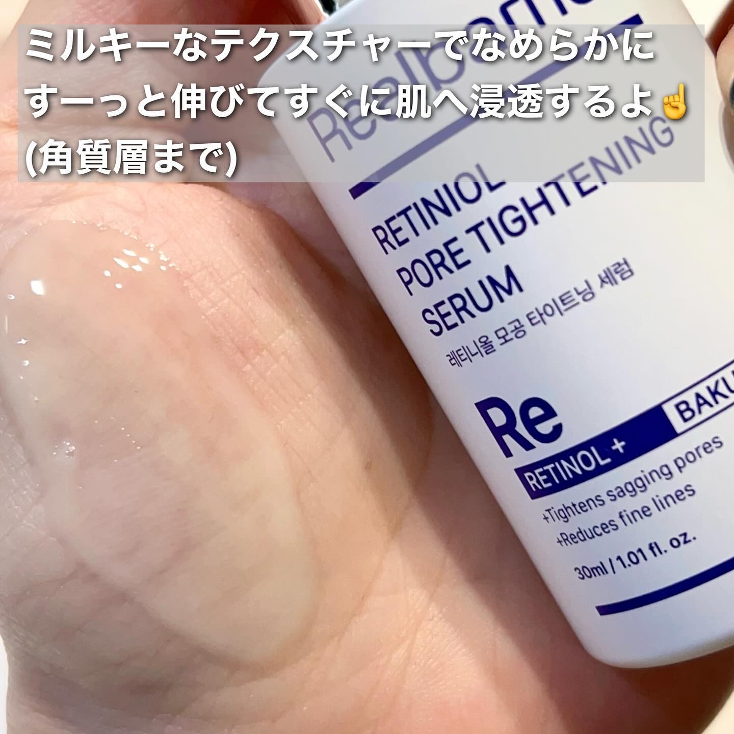 お肌のハリとシワをケアする毛穴弾力セラム✨ 毛穴の1/308サイズにリポソーム化したリポソームレチノール、高純度バクチオールと弾力成分のアデノシン、コラーゲン、エラスチンが配合されたレチノールセラムです💜 特に香りは無く、クセの無い使用感でした⭐️ 独自開発のセラミド、フィトステロール、リノール酸、パンテノール、10種のヒアルロン酸でお肌の水分バリアケアも出来るので乾燥が気になる今の時期にぴったり💜