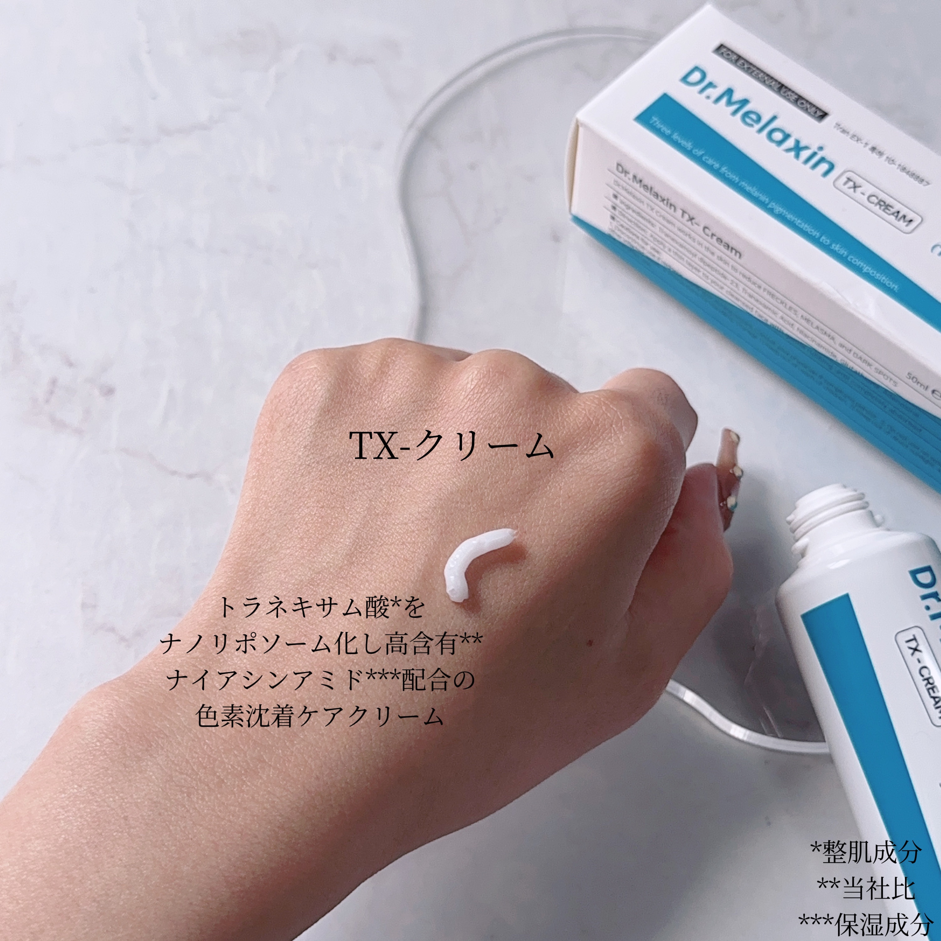 独自のリポソーム化したナノトラネキサム酸 配合 ドクターメラクチンの名を轟かせたと言っても過言ではないTXライン。 そのトラネキサム酸がナノリポソーム工法によって角質層まで浸透しやすくなり、ナイアシンアミドと共にW高配合でシミ、肝斑、色素沈着などにしっかりとアフローチ⚔️ トラネキサム酸だけかと思いきやナイアシンアミドまで、しかも高配合‼️ エイジングケアに必要な要素を1つで摂れるのは嬉しいし、人気なのがよく分かるよね👏