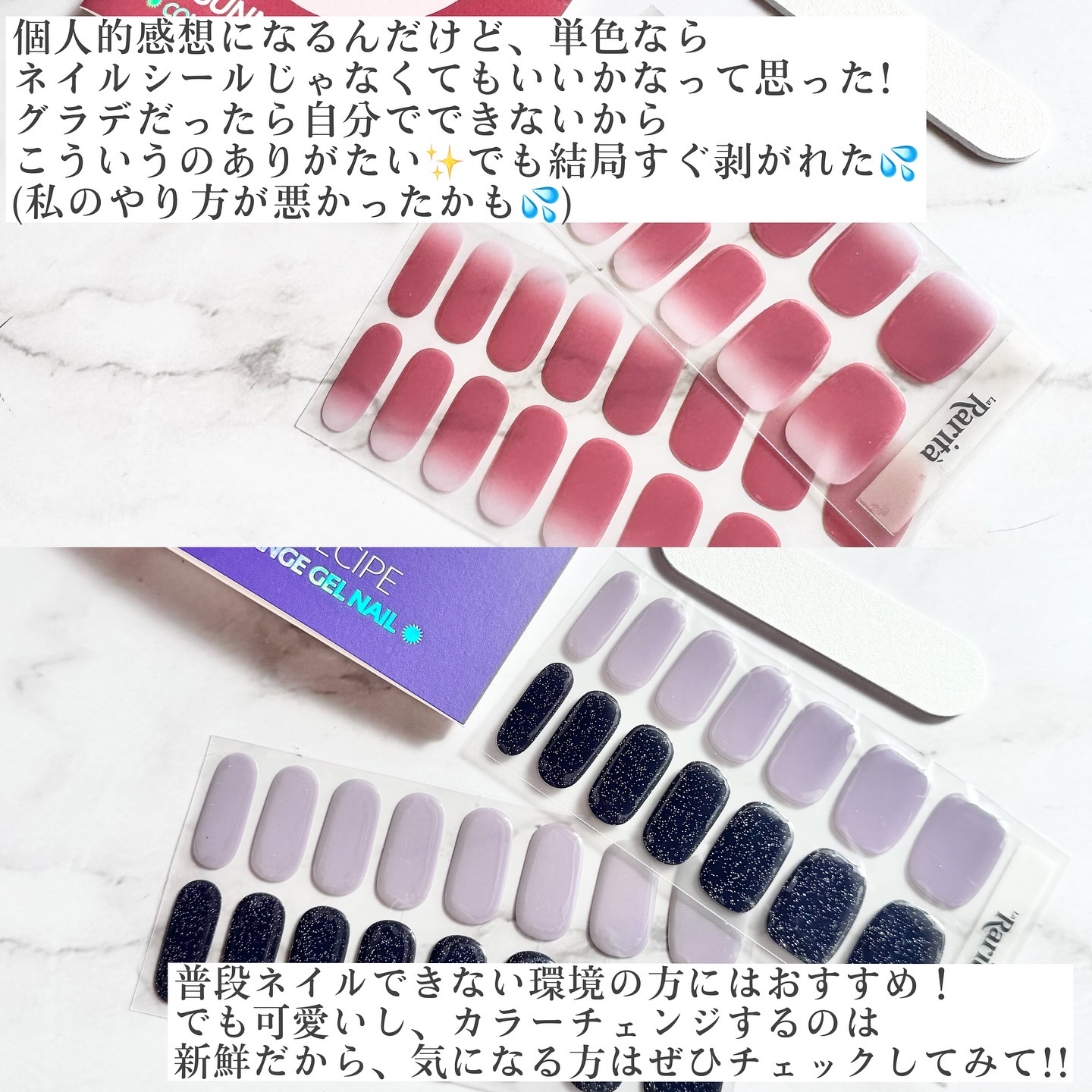 | ネイルランキング第73位 | 休日だけやイベントのときだけネイルしたい人にはおすすめです😊 オフもお風呂で剥がすだけなので簡単でした! | 詳細を見る | ||