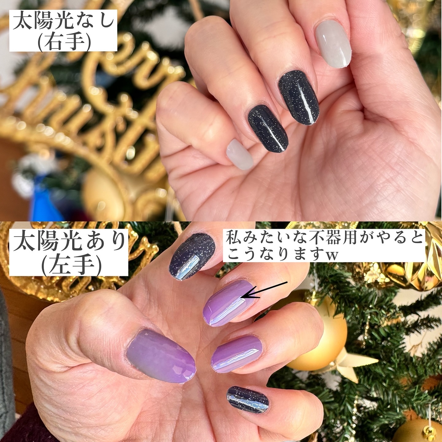 サニーレシピカラーチェンジネイルシールギャラクシーグレー💅🏻太陽の光で色が変わる新感覚のジェルネイルシール✨UVランプ不要だから、ランプを持ってなくても貼るだけでぷっくりジェルネイルのような仕上がりになるから出かける前にネイル出来なかった😭と...