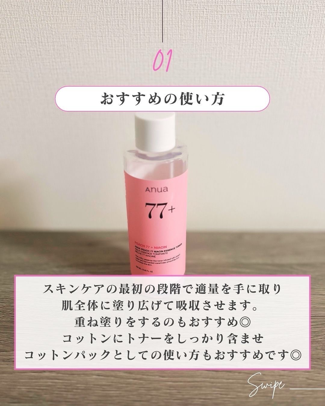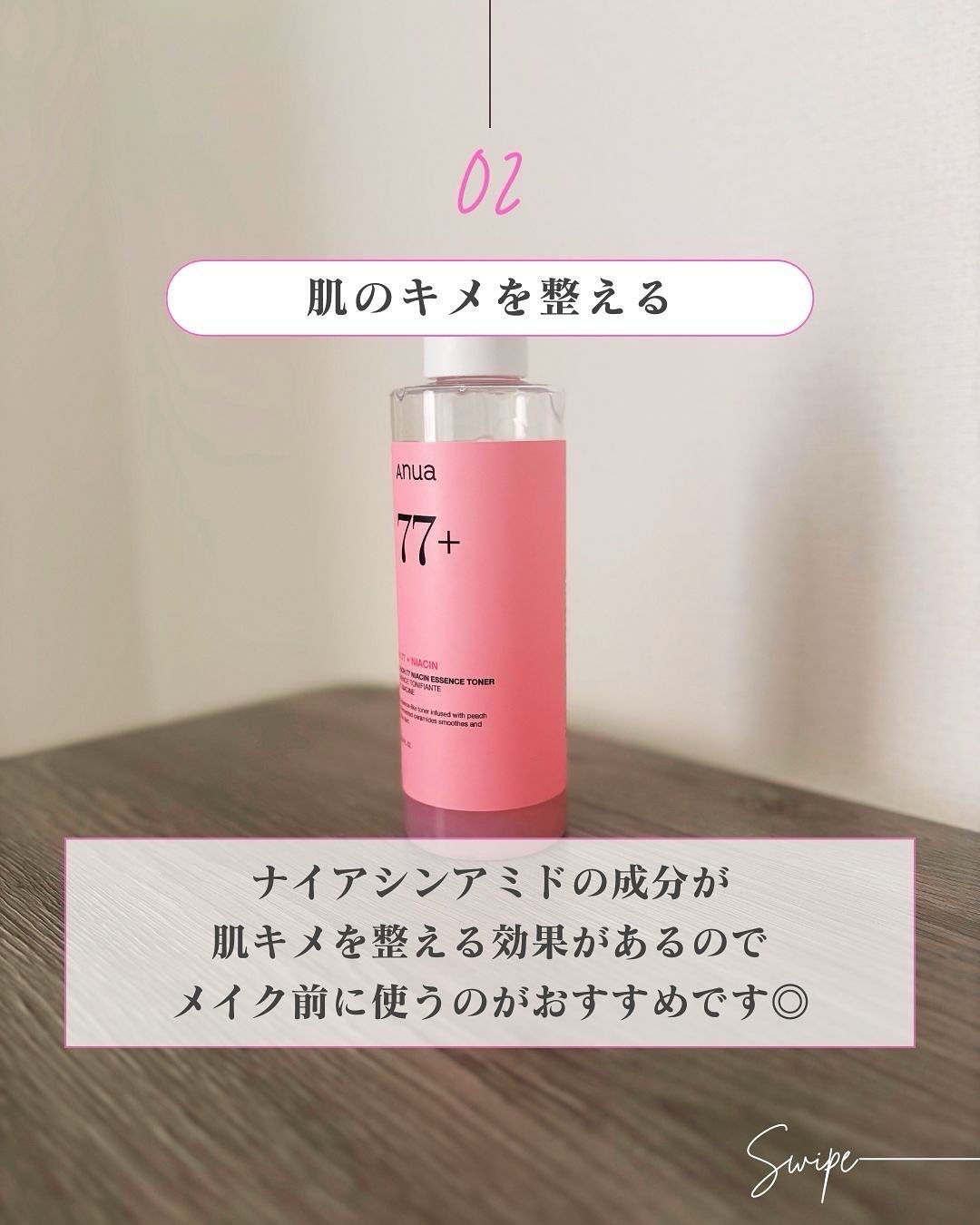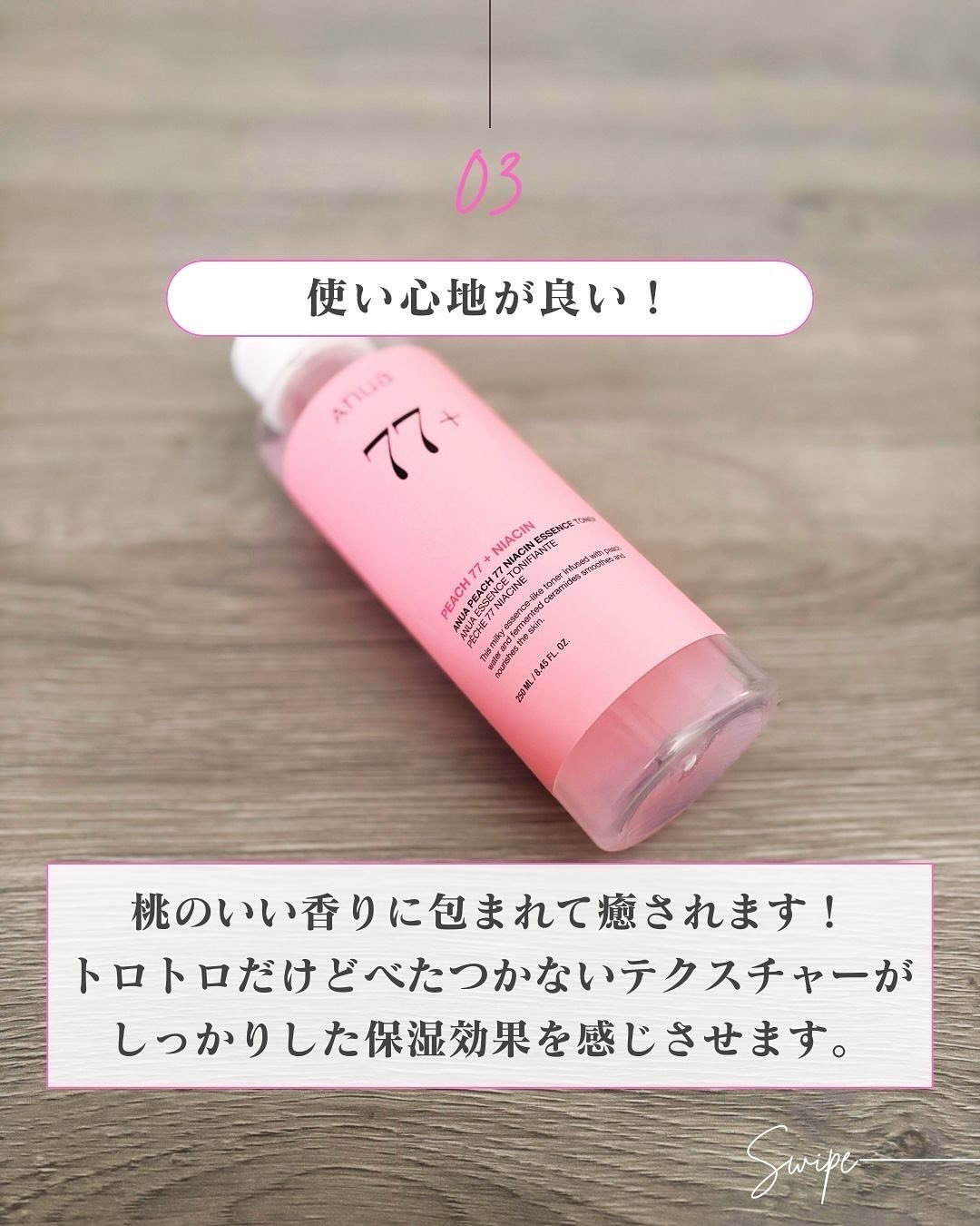みずみずしい透明感、肌にチャージ🫧Anua桃77ナイアシンエッセンストナー\ピーチエキス×ナイアシンアミド配合!/ツルッとしたキメ肌に整え、メイクの土台を整えてくれるトナー✨💧少しとろみがあるのにベタつかずしっとり保湿💧重ね付けやコットンパッ...