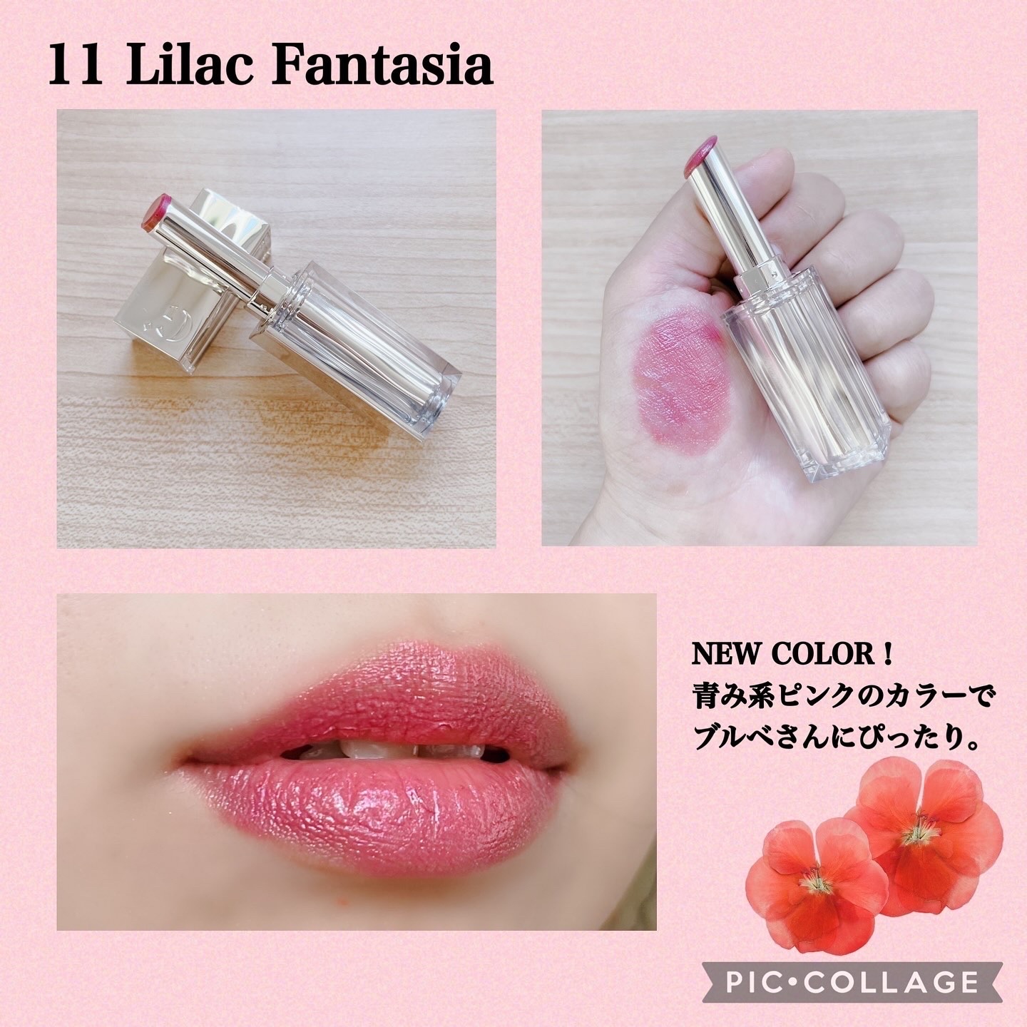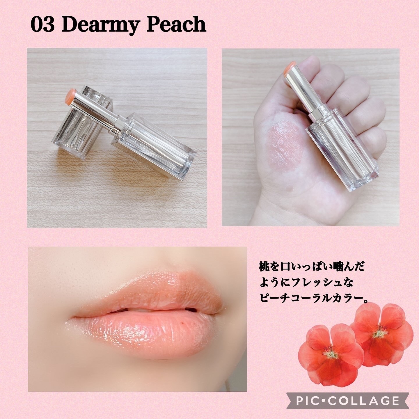 しっとり滑らかな塗り心地でリップバームなので保湿も◎ 持続性はないものの発色抜群で一気に華やかな顔にしてくれるよ🤲 透け感のあるピンクコーラルで3つの中で1番使いやすいカラー🧡 難しいカラーと思ってたけど偏光ラメ?っぽいのが入っててめちゃくちゃ可愛かった😍1番のお気に入りー!!