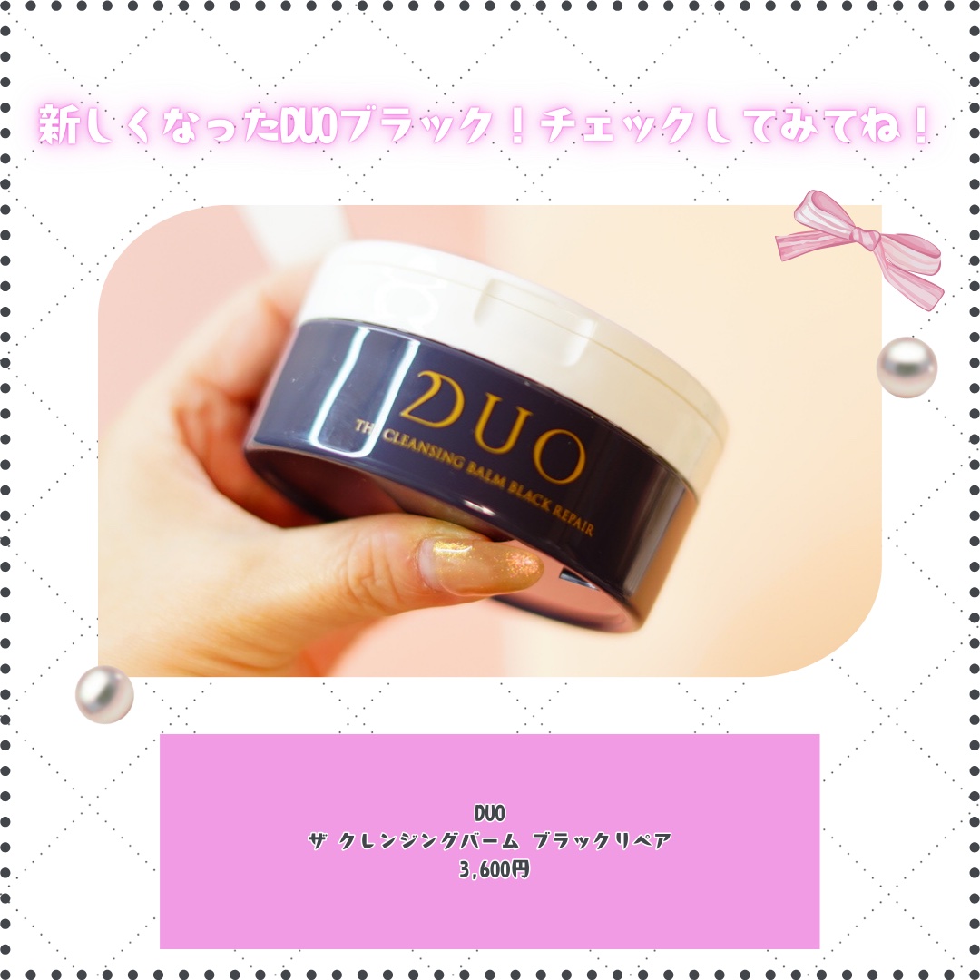 大人気のDUOザ クレンジングバーム ブラックリペアがリニューアルして新発売🖤 スキンケア効果がUP トラブルを繰り返しにくく肌調子が上がる 炭角栓溶解オイル×AHA含有エキスの力で頑固な角栓や毛穴の黒ずみ汚れを根こそぎオフ。 約80%がスキンケア成分のクレンジングバーム🖤 ダブル洗顔不要なのも嬉しいポイント🖤