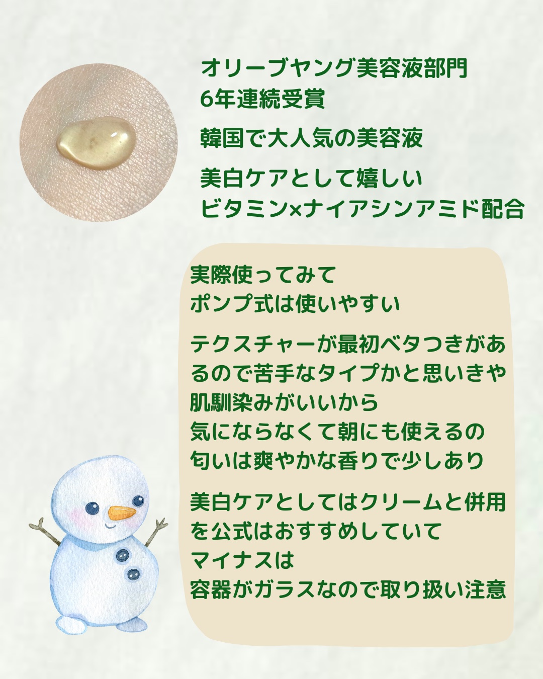 使い方 ↪︎基本的には夜のみ テクスチャー ↪︎伸びがいい、香料が苦手な私でも気にせず使える それでも使い続ける理由 ↪︎トラネキサム酸のシミや肝斑などの色素沈着の改善する効果を日本ではここまでの高濃度は手軽に買えないので毎日使い続けることで少しでも肌のムラが良くなって欲しい
