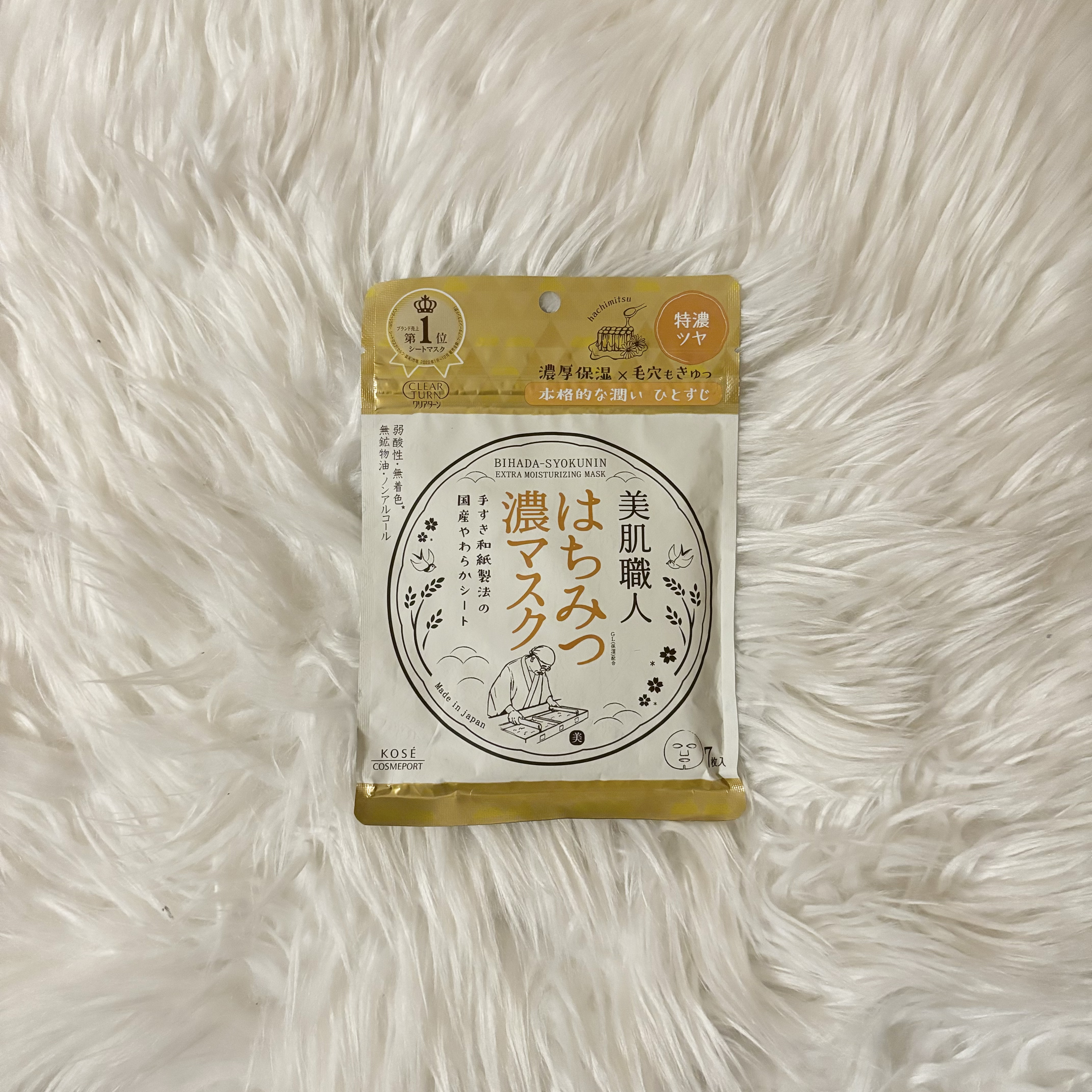 北海道限定のはちみつの香りのマスク ・北海道産の菩提樹のハチミツ、青シソの葉から抽出したエキスを贅沢に配合 ・うるおいと明るいツヤをもたらす 美容液がとってもいっぱい入っている ・保湿力が高く私にはベタついた
