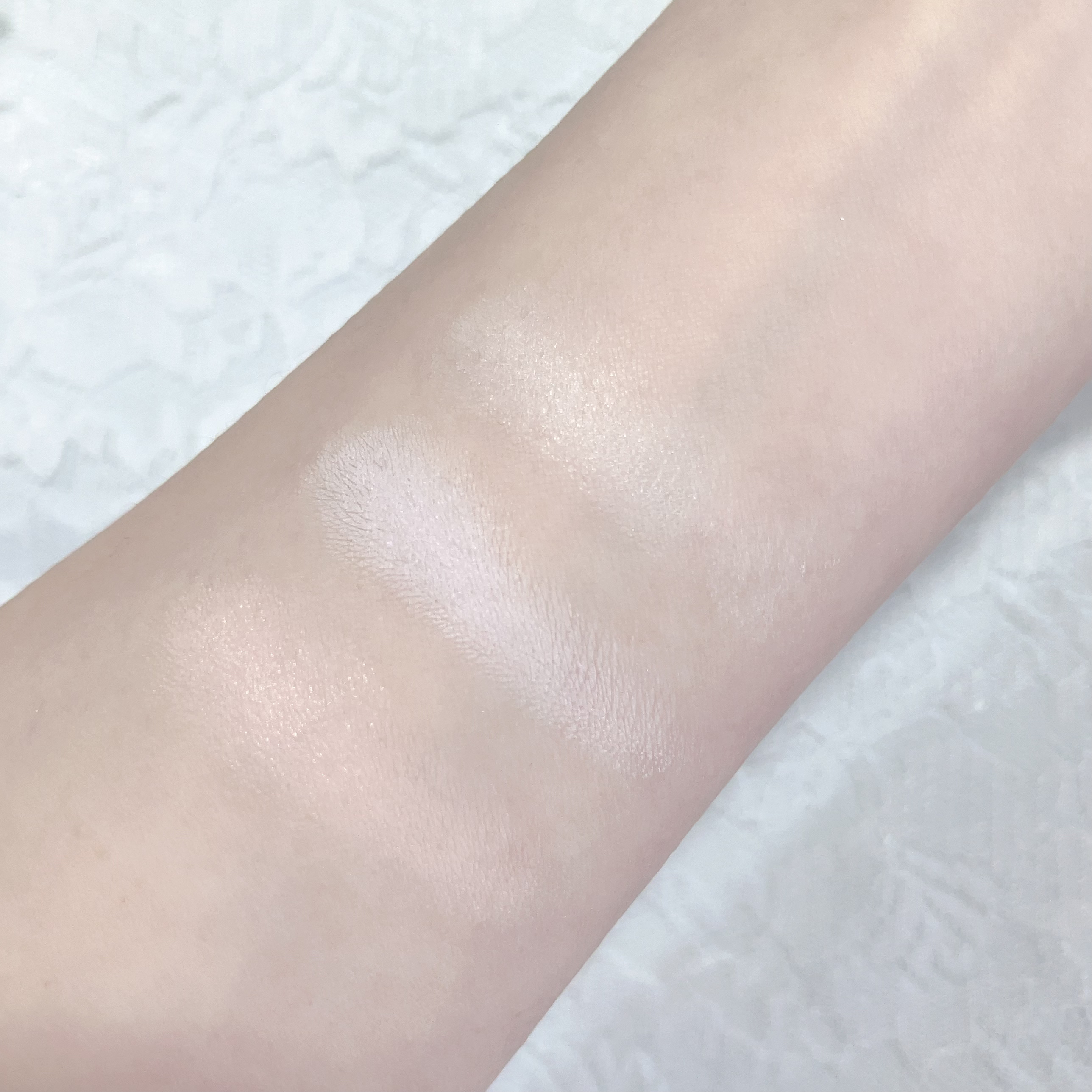 さらさらで伸びが良いテクスチャー。 肌への密着感もあって、ピンクベージュの色みが毛穴のカバーとほんんのりトーンアップも。 クリームのようなテクスチャー。 肌にのせすぎると白っぽくなるので、少しずつ伸ばすのが◎ なめらかテクスチャー。 細かいパールが入ってますが、ギラギラしたりもなく自然な感じ。