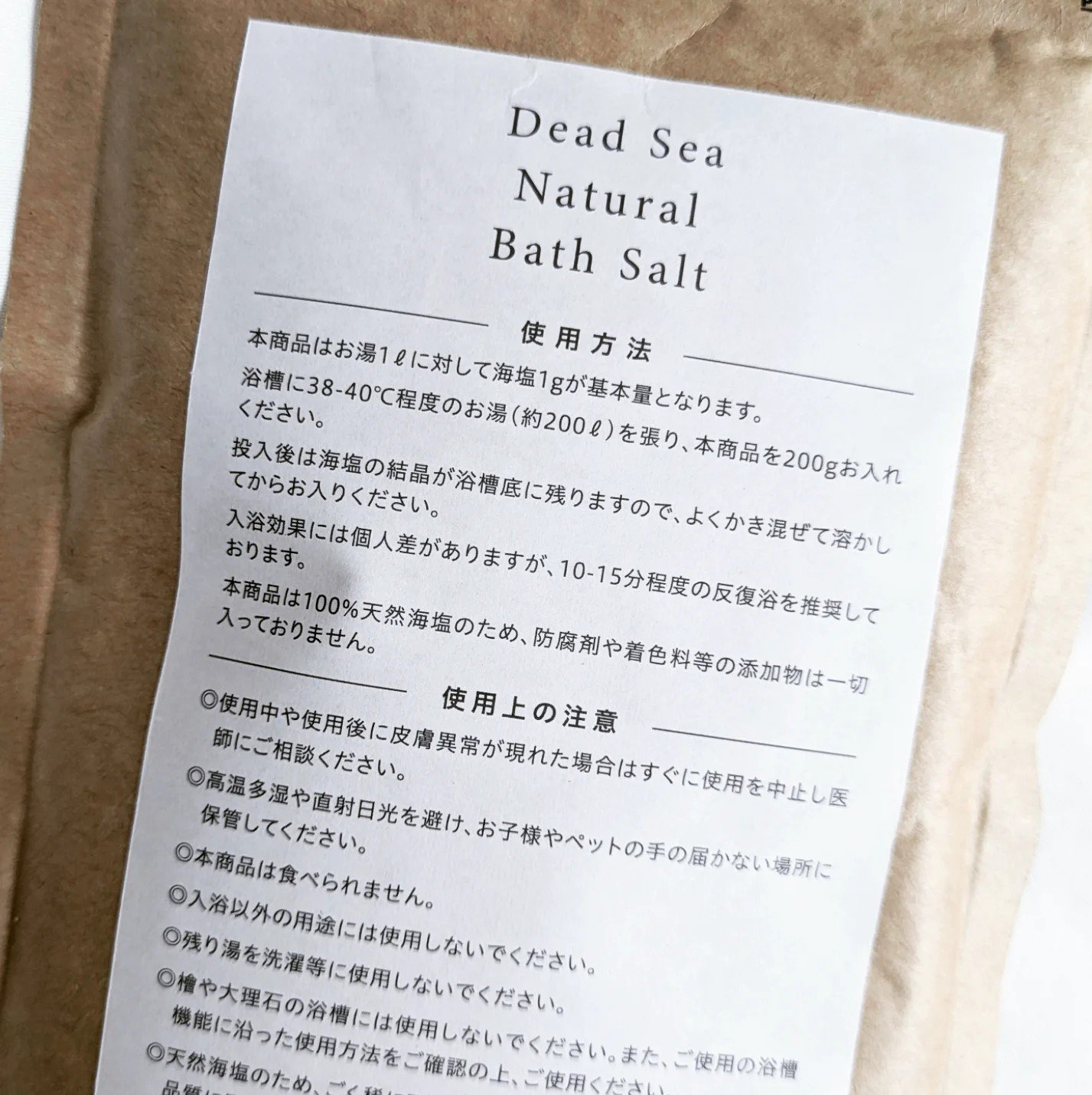 デッドシー ナチュラルバスソルト 200g×3袋をいただきました。光が当たると、きらめいてとても綺麗!死海の塩が100%使われた、正真正銘天然・無添加のバスソルトです。 豊富な天然のミネラルが、乾燥から肌を守ってくれるそう。『デッドシー ナチュラルバスソルト』は塩化マグネシウムがメイン成分🙌✨このマグネシウムが皮膚や血液、そして全身にいいアプローチをしてくれるそうです🛀 無着色料、無香料、無添加だから、家族みんなで入浴できます🛀 私はアロマオイルも垂らして、好きな香りを楽しみながら入浴しています。