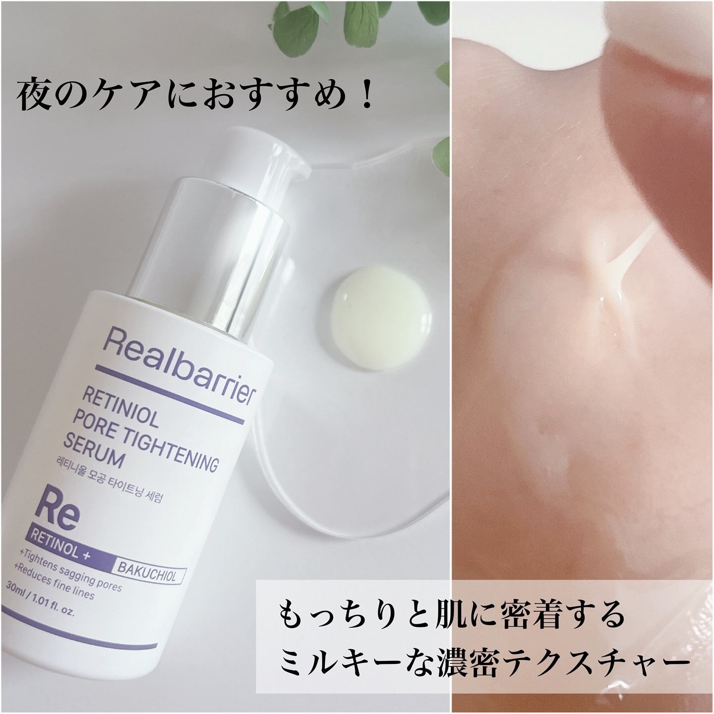 リアルバリアは肌バリア専門ブレンドで、実際の肌構造に似た独自開発保湿成分で崩れた肌バリアを回復してくれるよ🙌 毛穴の1/308サイズにリポソーム化したリポソームレチノール、高純度バクチオールと弾力成分のアデノシン、コラーゲン、エラスチンが配合 ビタミンCの効果と安定性を兼ね備えた独自原料のペプチビタCを毛穴1/356サイズにリポソーム化