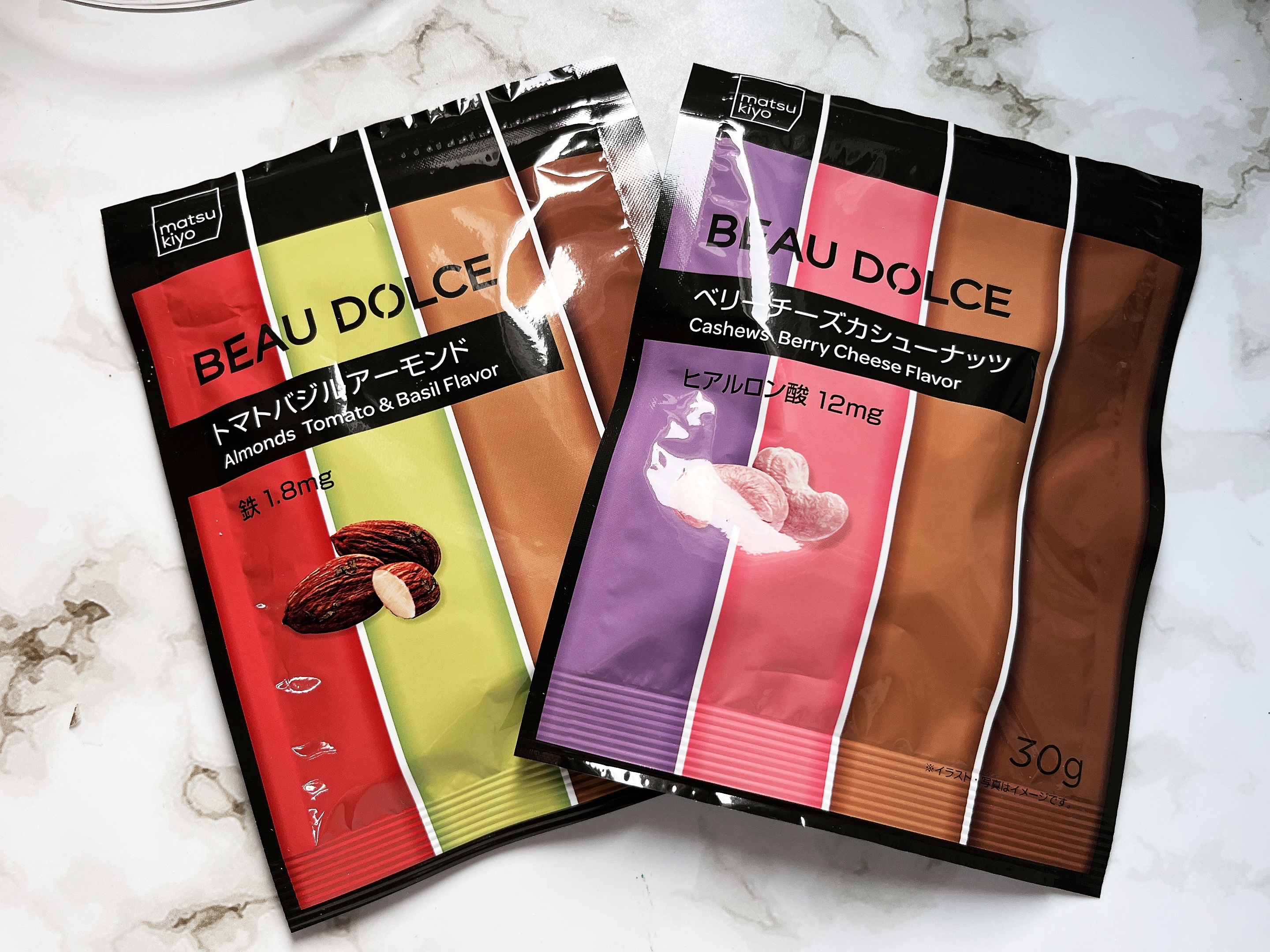 「BEAU DOLCE(ボウドルチェ)」は、ヒアルロン酸やGABA、乳酸菌などの美容によいとされる成分を配合した、新発想の「美容おやつ」🍪 新商品はアーモンドキャラメリゼ!チャック付きなので持ち運びにも便利👜 味も美味しくてついつい食べちゃう😋私はトマトバジルアーモンドがお気に入り🍅