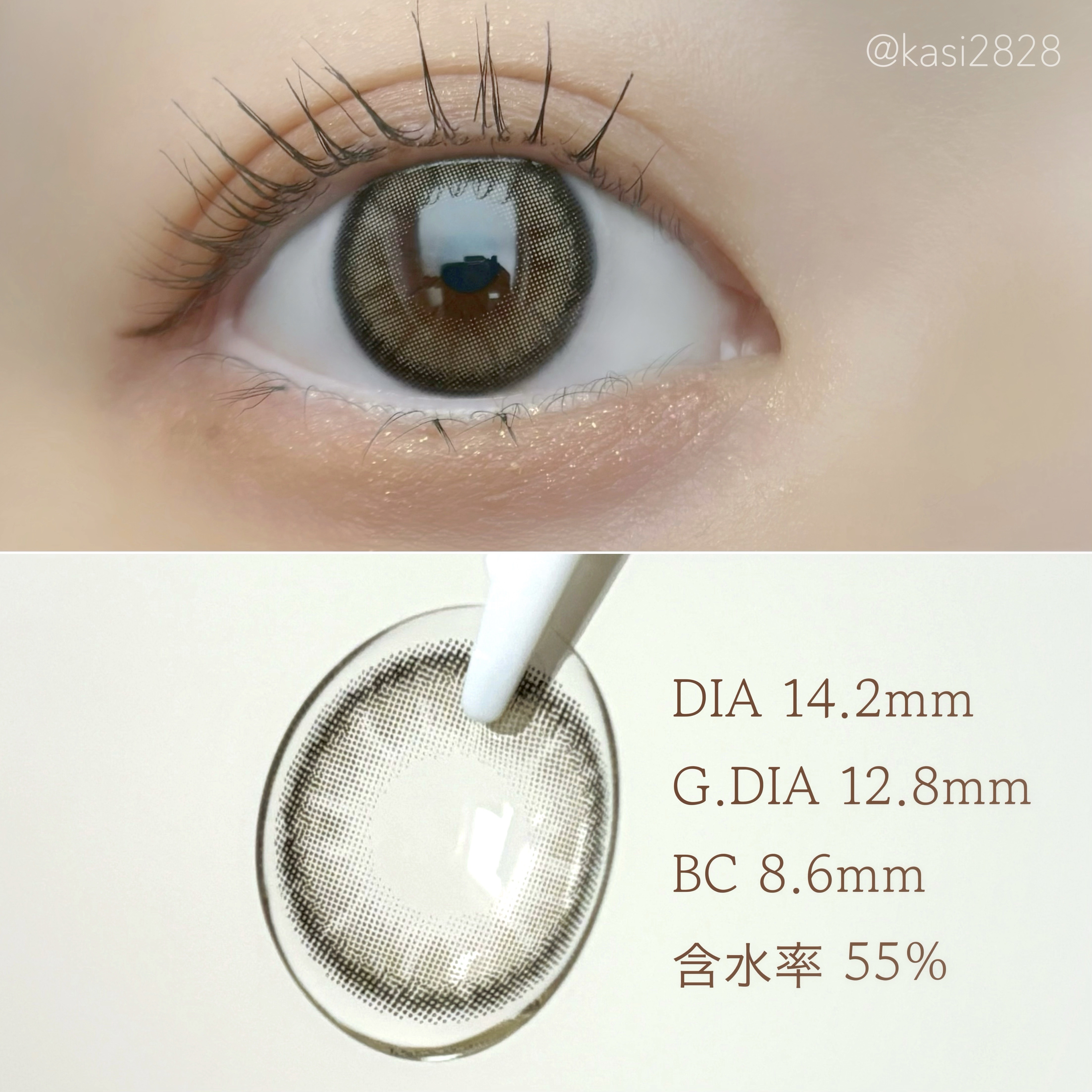 ほんのりグレーカラーが透明感のあるぷるちゅるんと輝く瞳に💎 元から色素薄い瞳に見えるくらいナチュラルでかわいい🐇💕 私はドライアイで目が乾いてしまうので、着用時間を短くして使用してます😭結構すぐ充血してしまうので目薬必須🥲 可愛くて盛れるけど、目が痛いです🥲🥲🥲