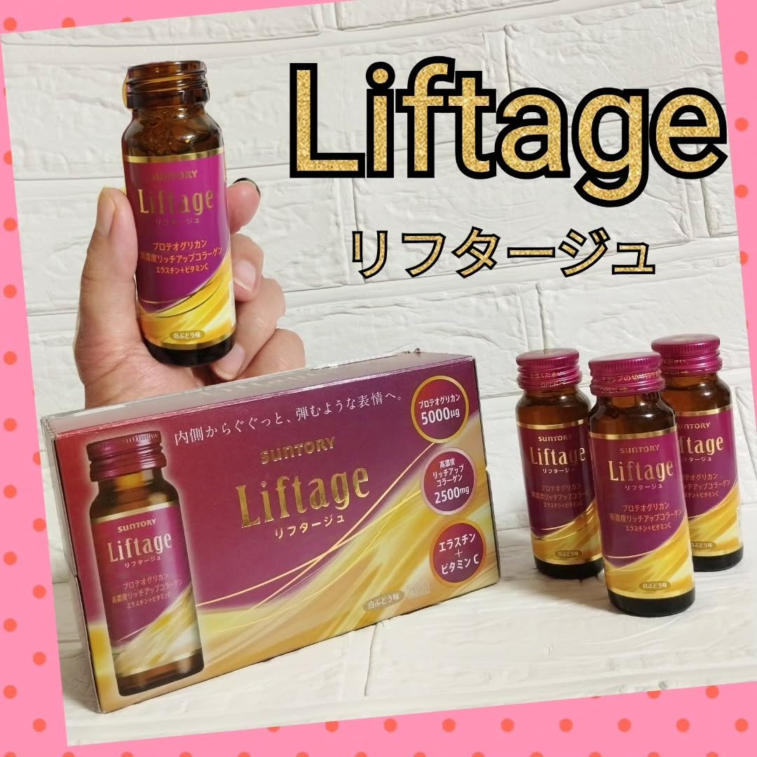 Liftage[リフタージュ]サントリーの研究力でたどり着いたプレミアムな3成分*の組み合わせ💕*3成分:プロテオグリカン・高濃度リッチアップコラーゲン・弾力線維エラスチンどれも美容にとってうれしい成分です🥰自信に満ちたあなた史上最高の表情へ...