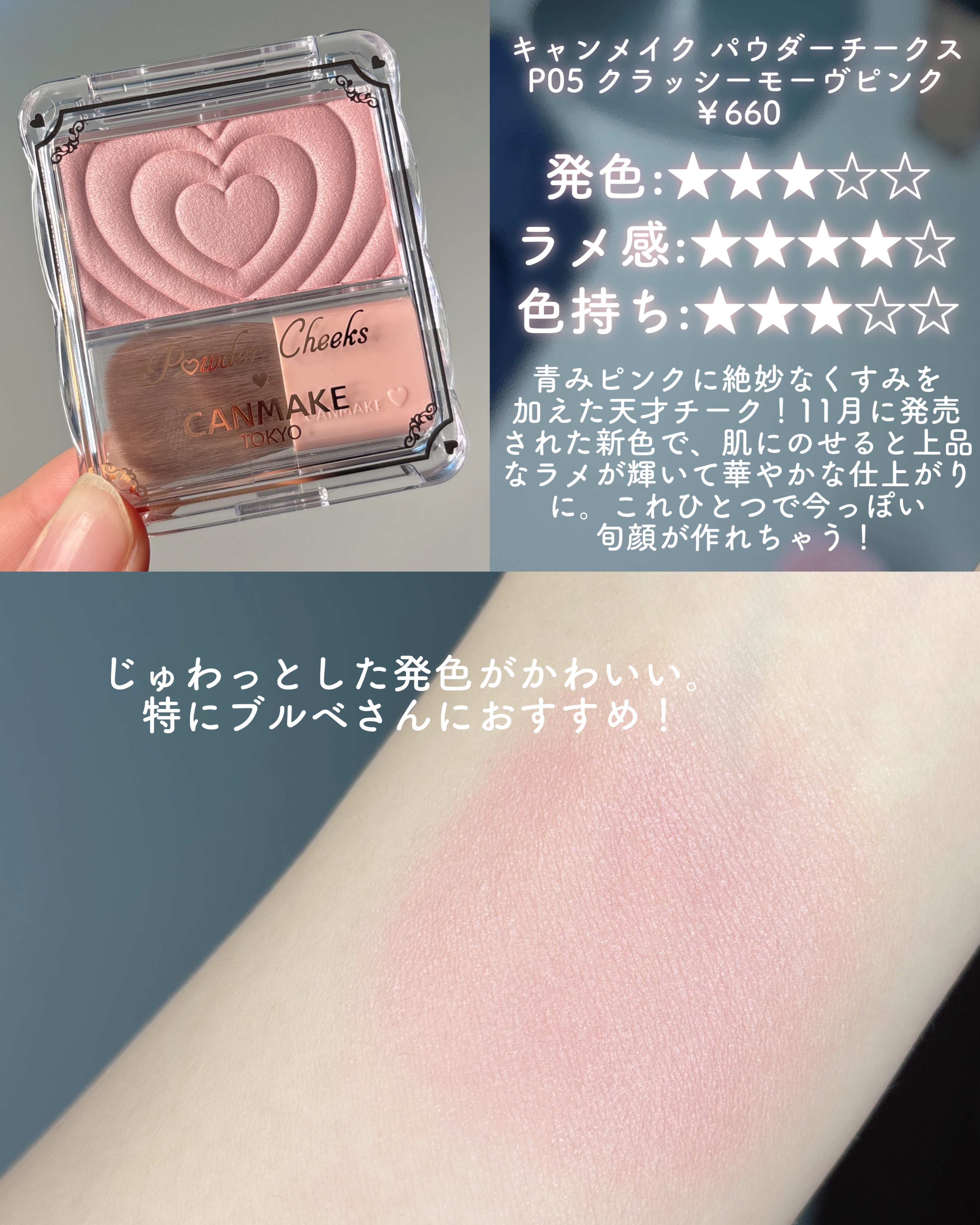 | チークランキング第3位 | ときめきチーク🥹見たまんまの綺麗な発色でツヤ感もあって良い♡ | 詳細を見る | |