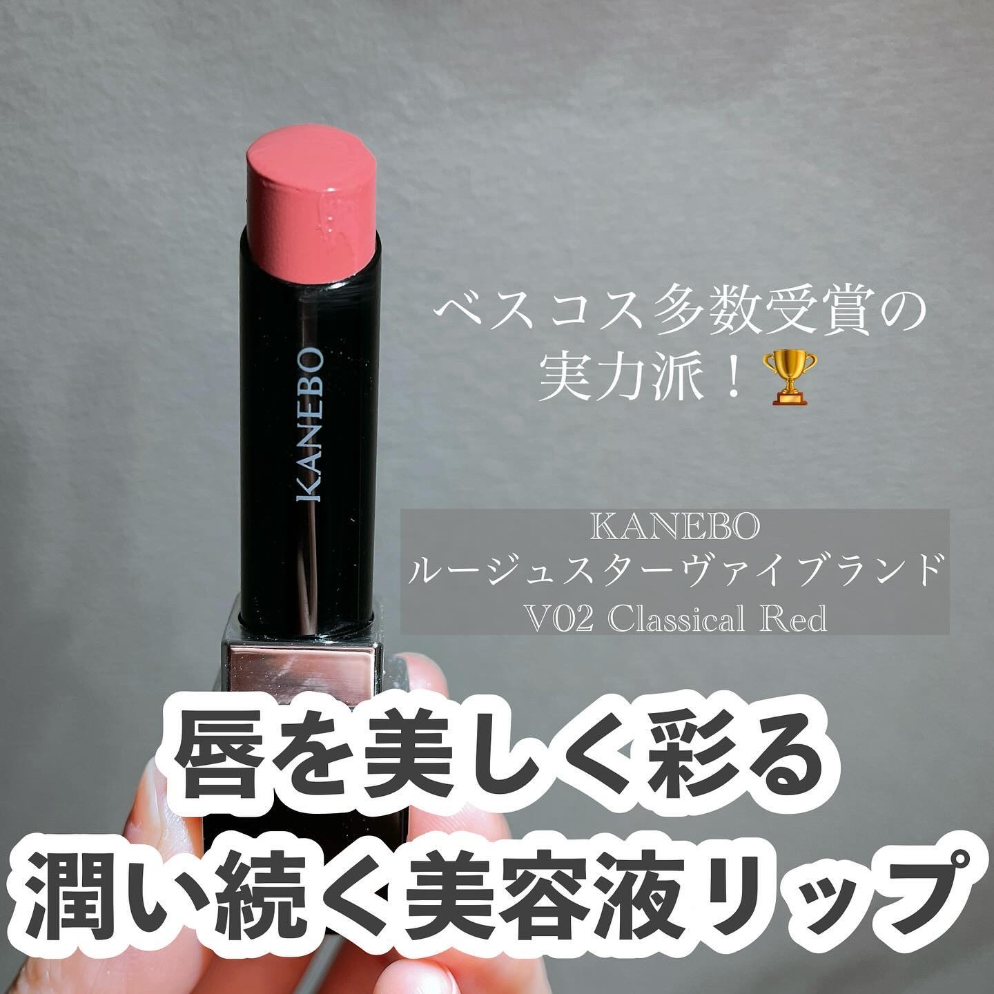 リップマニアの私の一軍リップ♡KANEBOルージュスターヴァイブランドV02ClassicalRed4.620円税込こちらは、ムチっとしたテクスチャーで色持ちもいい大バズりリップ!!生ツヤ感が本当好み!!実は、GETしてました笑もう、好きすぎ...