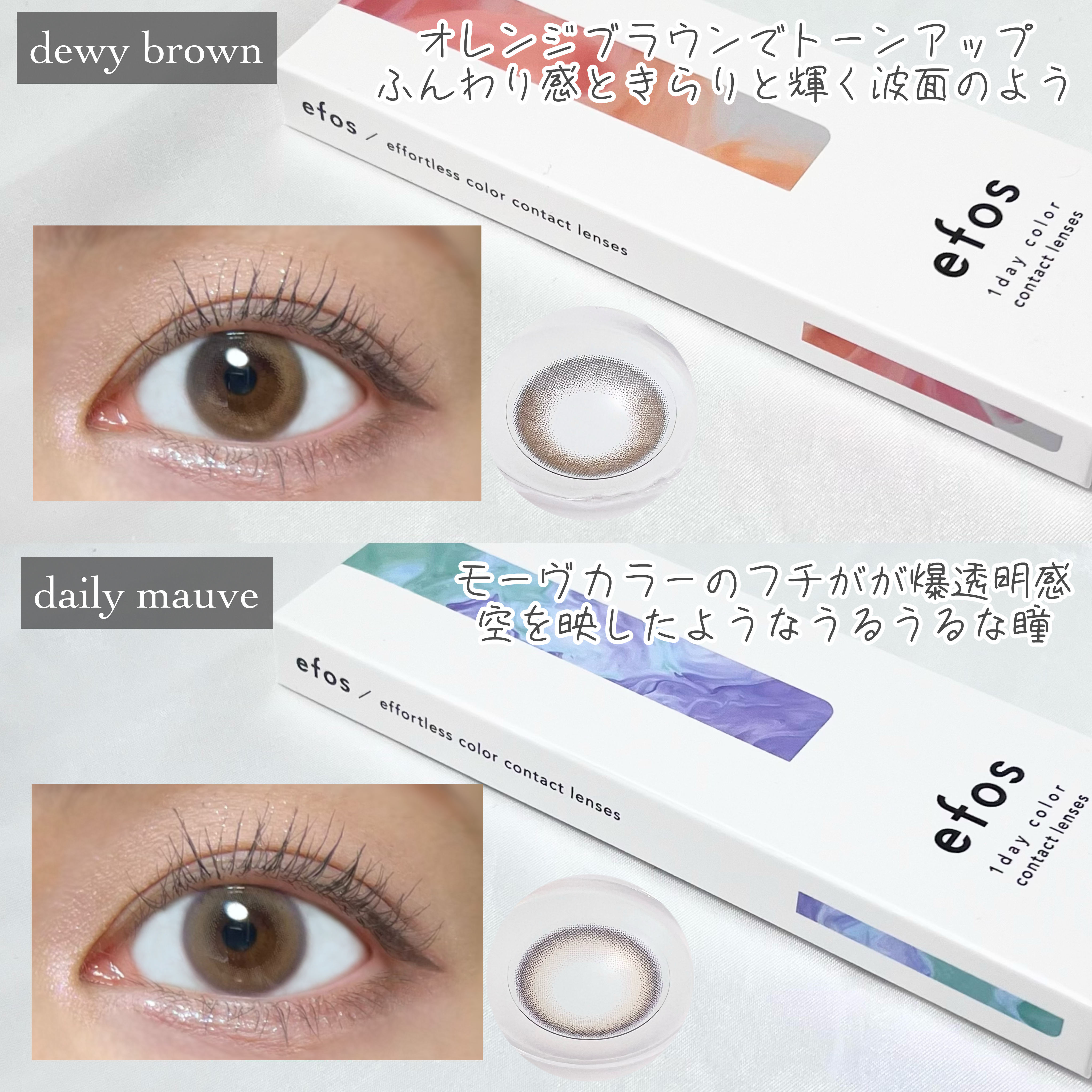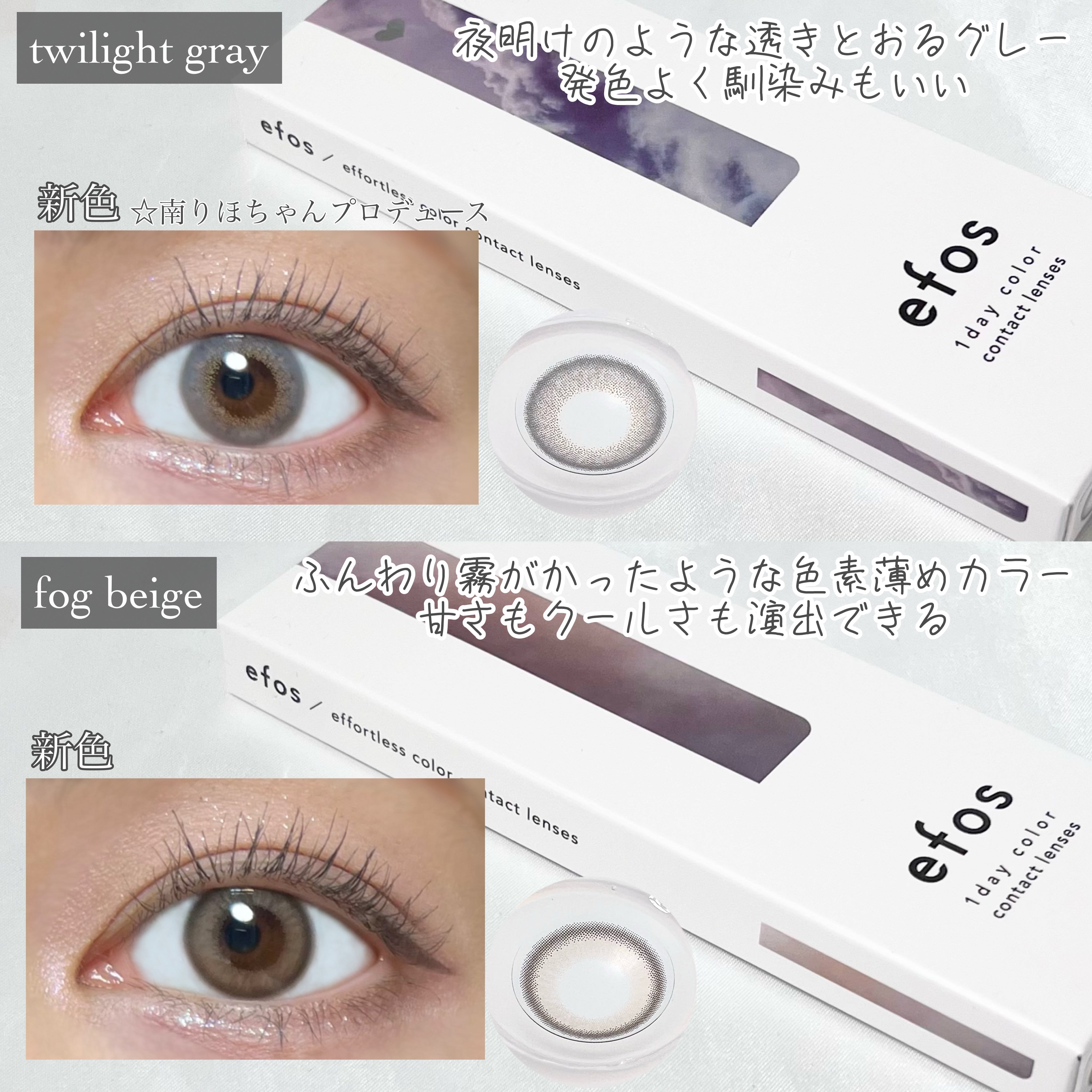 ナチュラルに盛れる!ハーフ系カラコンなのでどんなメイクにも合わせやすくて使いやすいです! 個人的にはtwilight grayとdairy mauveがお気に入りカラーになりました✨ ナチュラルなハーフっぽさが派手すぎなくて可愛い・着け心地は軽くゴロゴロしにくい(個人差あります!)
