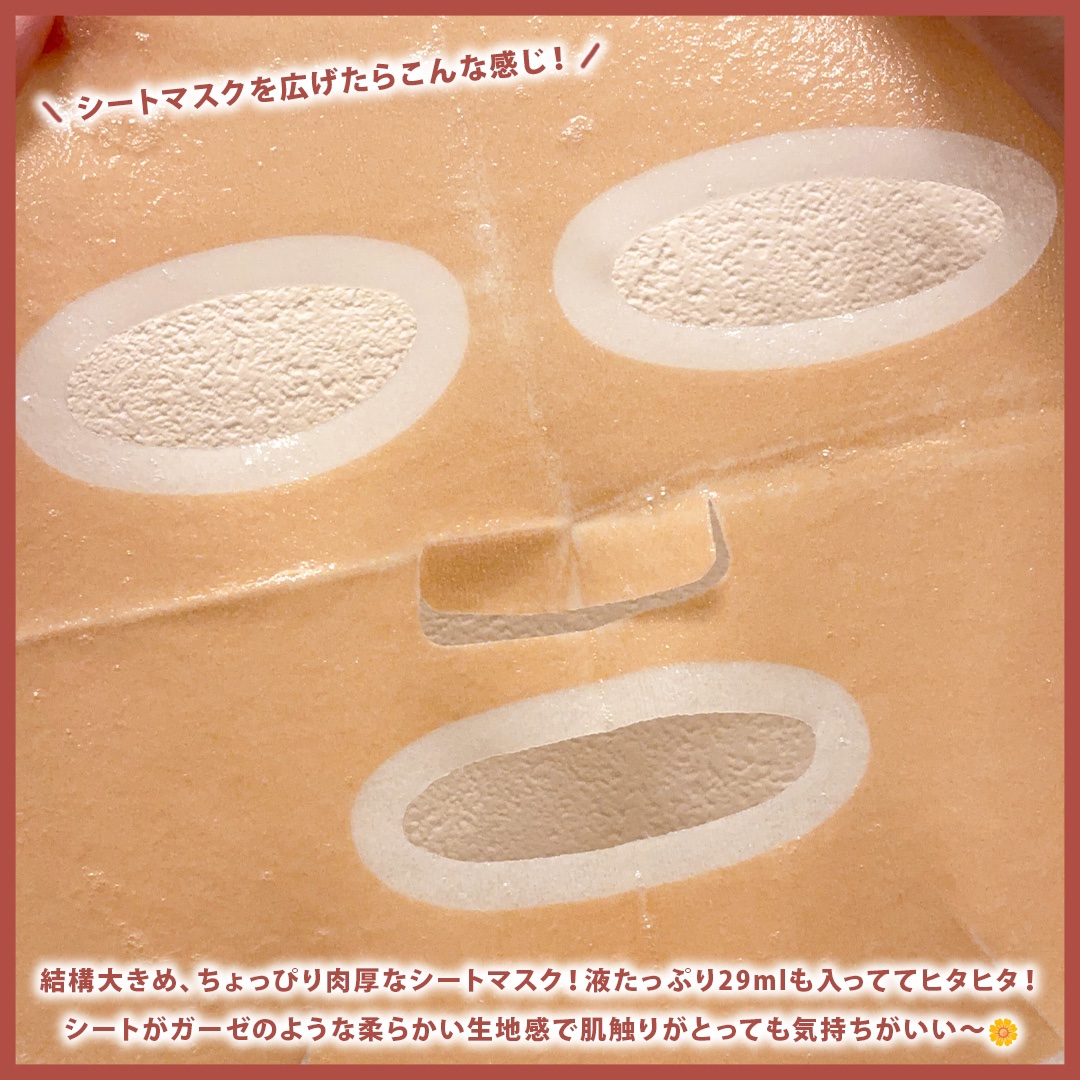 | 薄いシートにとぅるんとぅるんの美容液がひったひたに含まれており、シートの生地と使用感共に凄く好きでした☺️💖 | 詳細を見る |