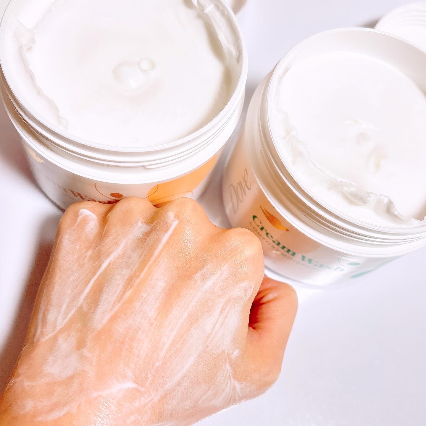 クリームタイプのボディウォッシュ😳! ピンポン玉大を手に取ってそのまま肌に伸ばして洗います👏 ボディクリームがいらないくらいもっちり潤いの洗い上がり🥰! スクラブと混ぜて使ったり泡立てて使うのもおすすめ🙌