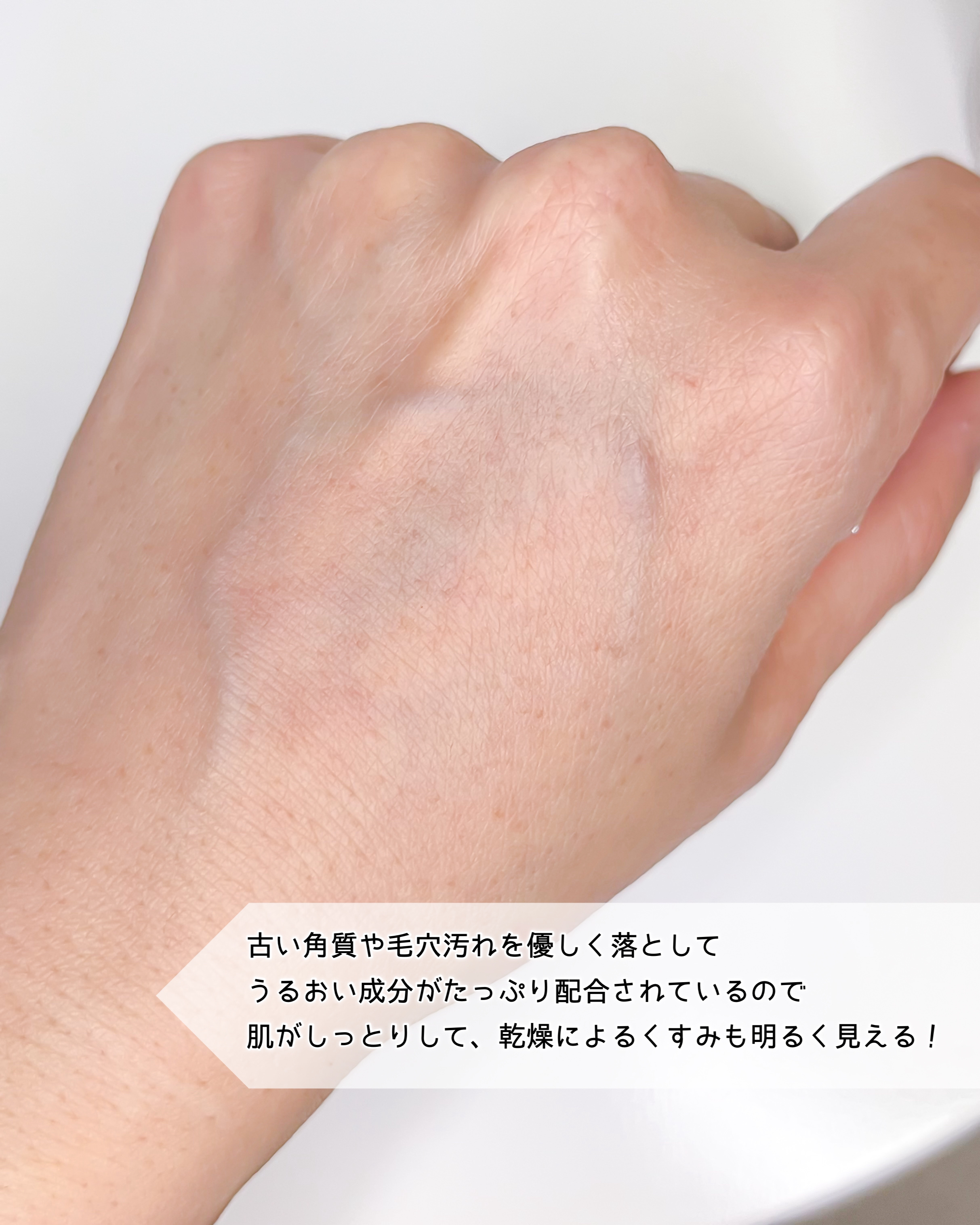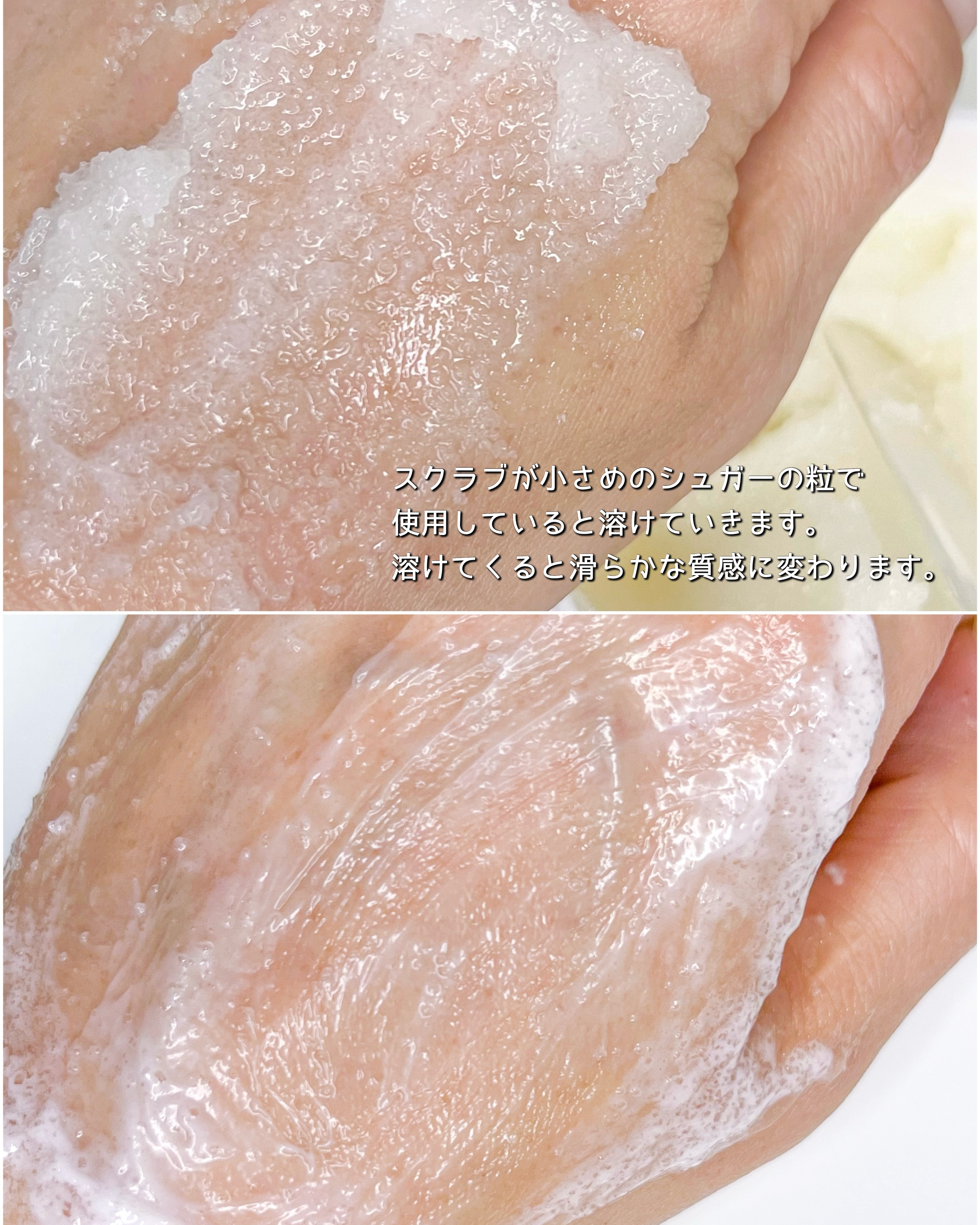 | オイルによる保湿感をしっかり感じるテクスチャー。擦るとシュガーが細かくなっていき徐々に肌になじんでいくよ | 詳細を見る | ||