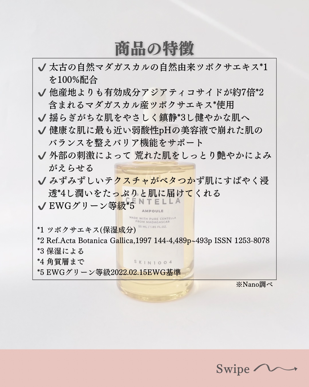 年中愛用し続けているセンテラアンプル🤍 乾燥が気になる時から肌荒れの時にも使いやすく、1軍スキンケアとして頼りにしています🌱 まるで水のようなサラッとしたテクスチャー💧 スーッと肌になじんでいきます👌🏻肌なじみが良すぎて驚くほど✨ マダガスカル産ツボクサエキス(保湿成分)100%配合されているそう🌿 鎮静ケアとして頼りになる成分なんだそう🥀