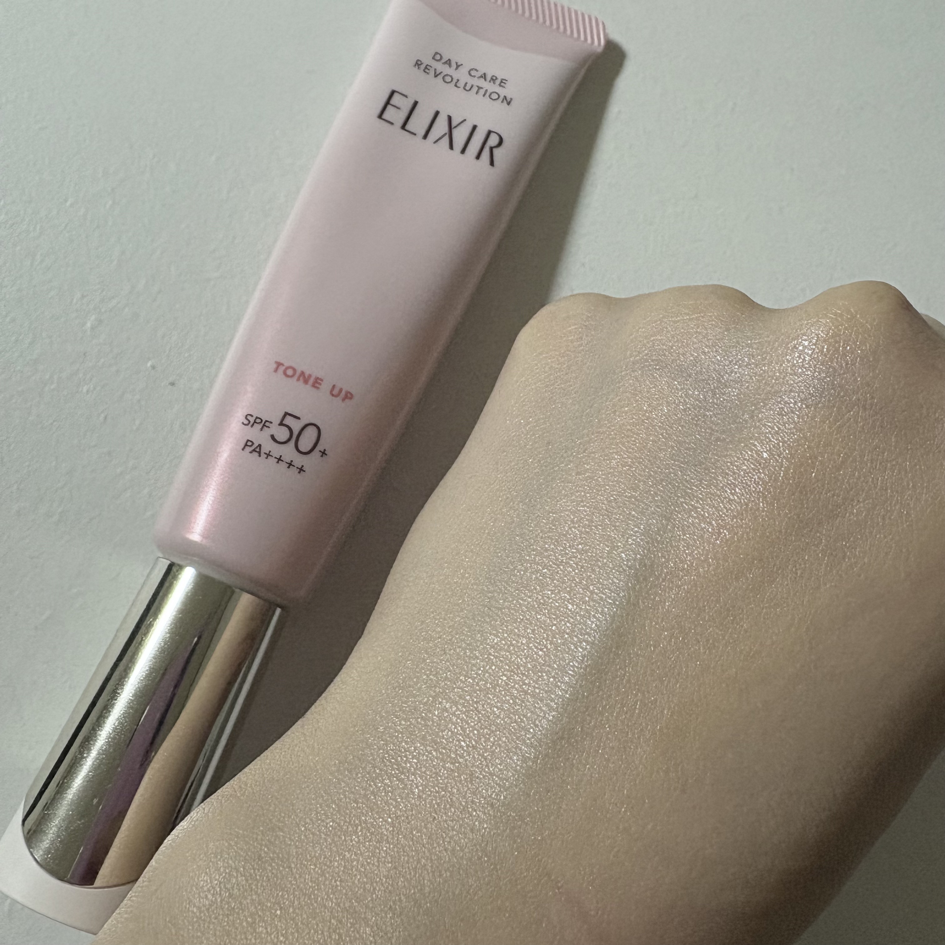エリクシール デーケアレボリューショントーンアップSP+aaトーンアップしながら、ハリに満ちた肌になりたい方はおすすめ✨SPF50+・PA++++だよ。これ1つで乳液(エイジングケア*)、UVカット(紫外線から肌を守る)、化粧下地(化粧崩れを...