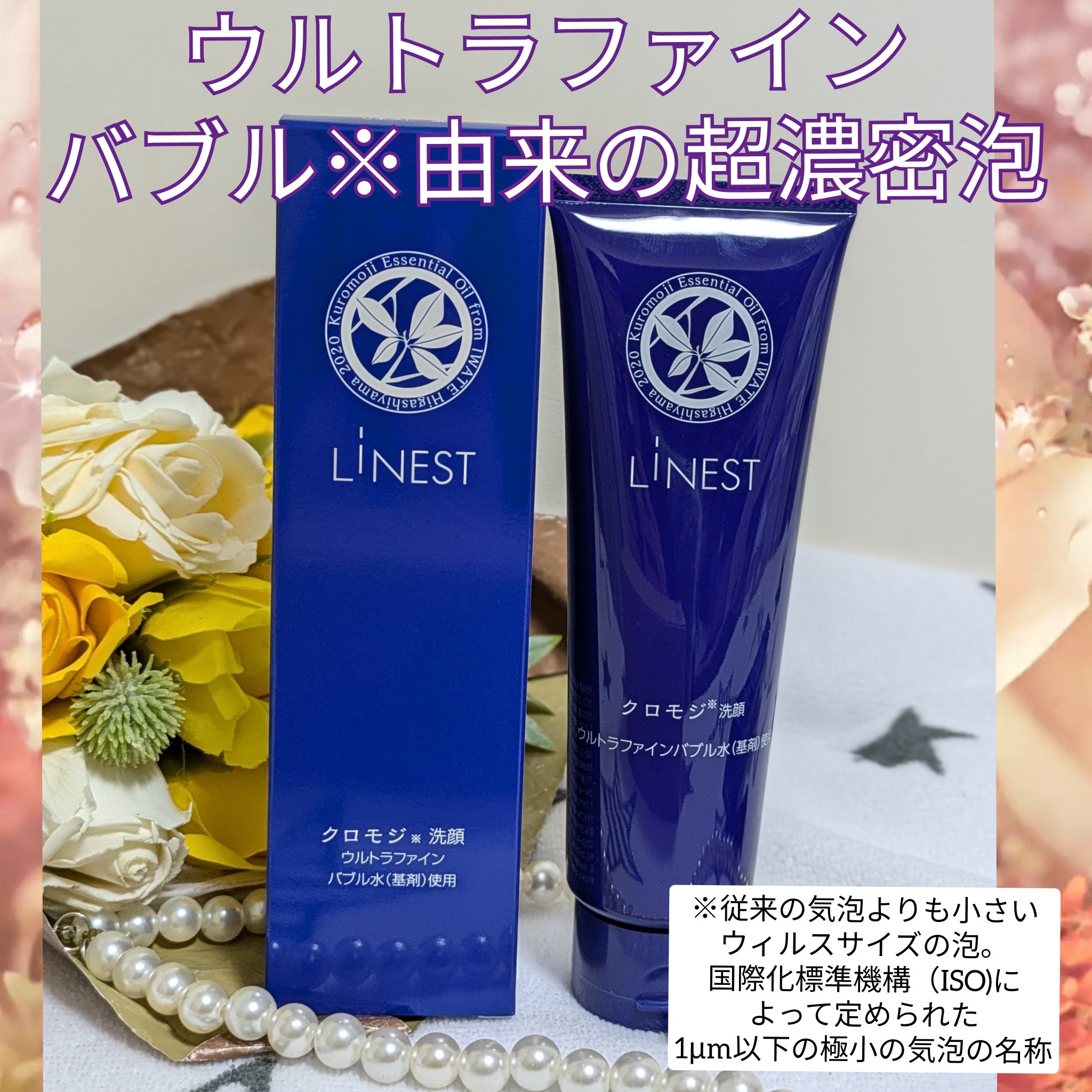 天然由来成分88%の贅沢な処方で、メラニン生成を抑えてシミ・そばかすを防ぐ美白効果と、ゴーグルゾーンのくすみ・ハリ不足・シワを改善するエイジングケア効果を両立♡ ウルトラファインバブルの濃密な泡が、ポロポロとくすみを取り払い、明るくキレイな素肌を引き出します✨ クロモジの爽やかで素敵な香りに包まれて、リラックスしながら洗顔できるのがうれしい🥰