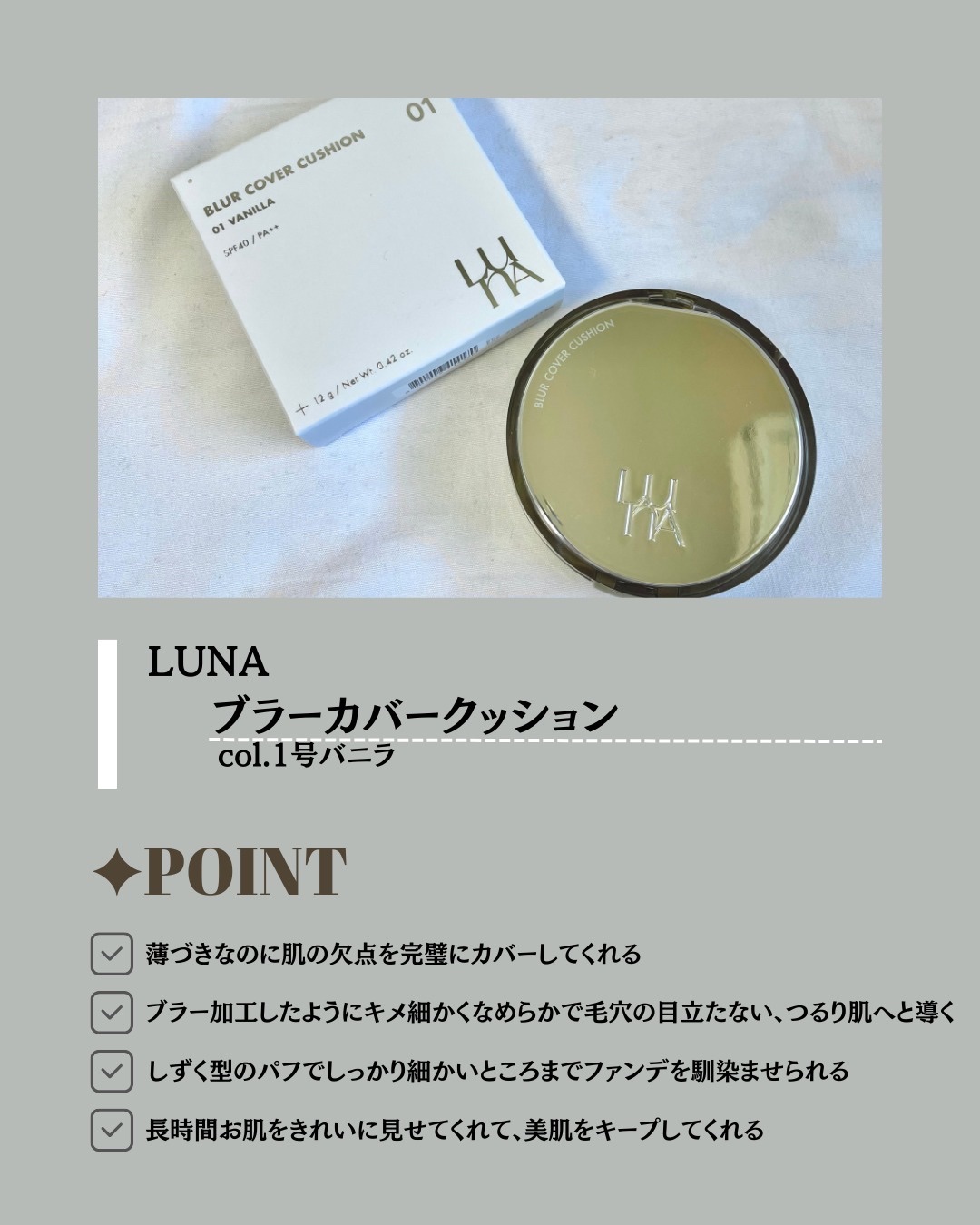 神クッションファンデ見つけた💡✼••••✼LUNAブラーカバークッション1号バニラ@luna_makeup_jp✼••••✼薄づきなのに肌の欠点を完璧カバー!ブラー加工したようにキメ細かくなめらかで、毛穴の目立たない、つるり肌へと導くブラーカ...