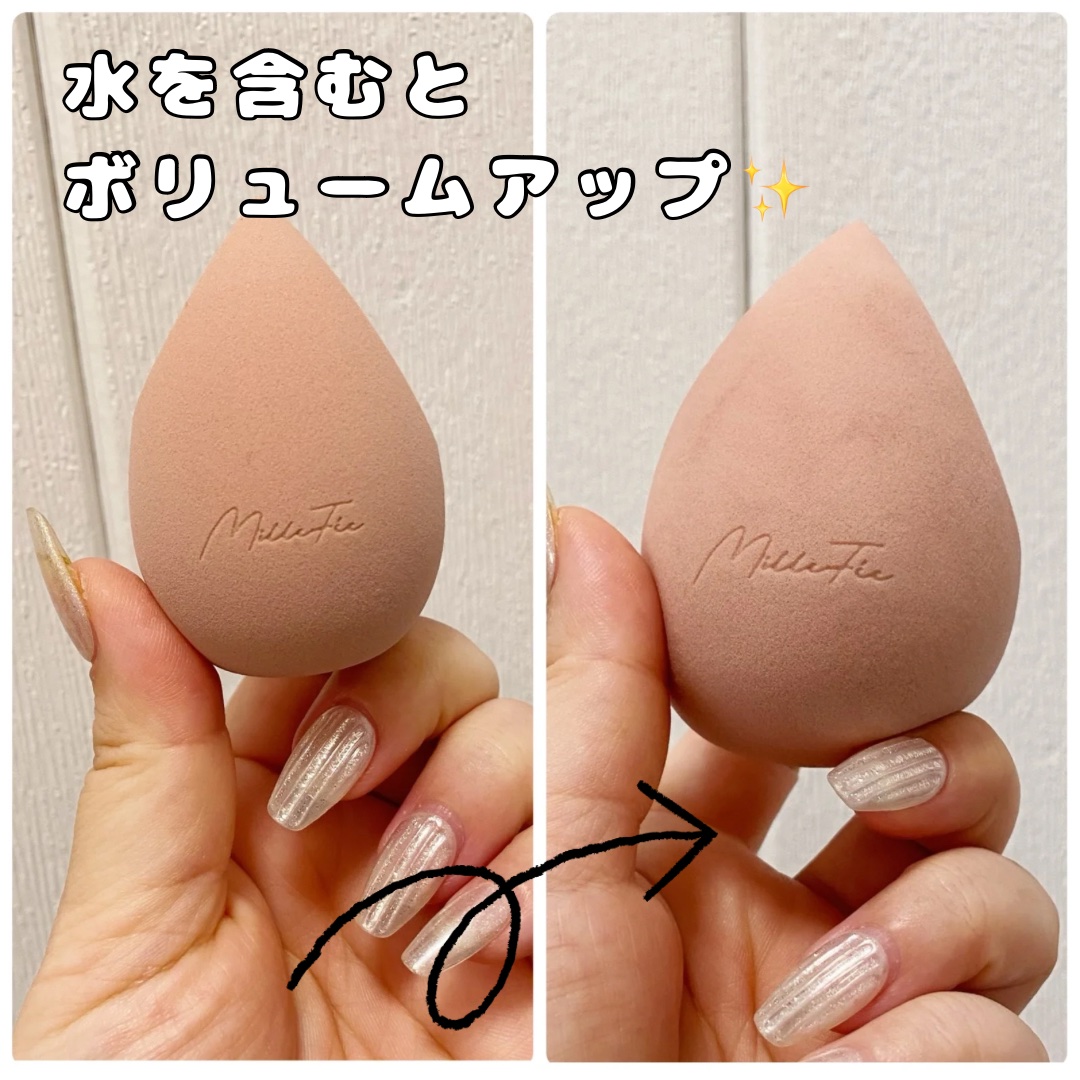 濡らして使うと更にベースメイクぴたっと仕上げられるみたい₍ᐢ‥ᐢ₎ ♡ 小鼻やキワは、この切り込みの部分を使ったりして塗るといい感じに細かい所まで塗れました! スポンジの全面にはMilleFeeの文字も書かれていてオシャレな感じ✨